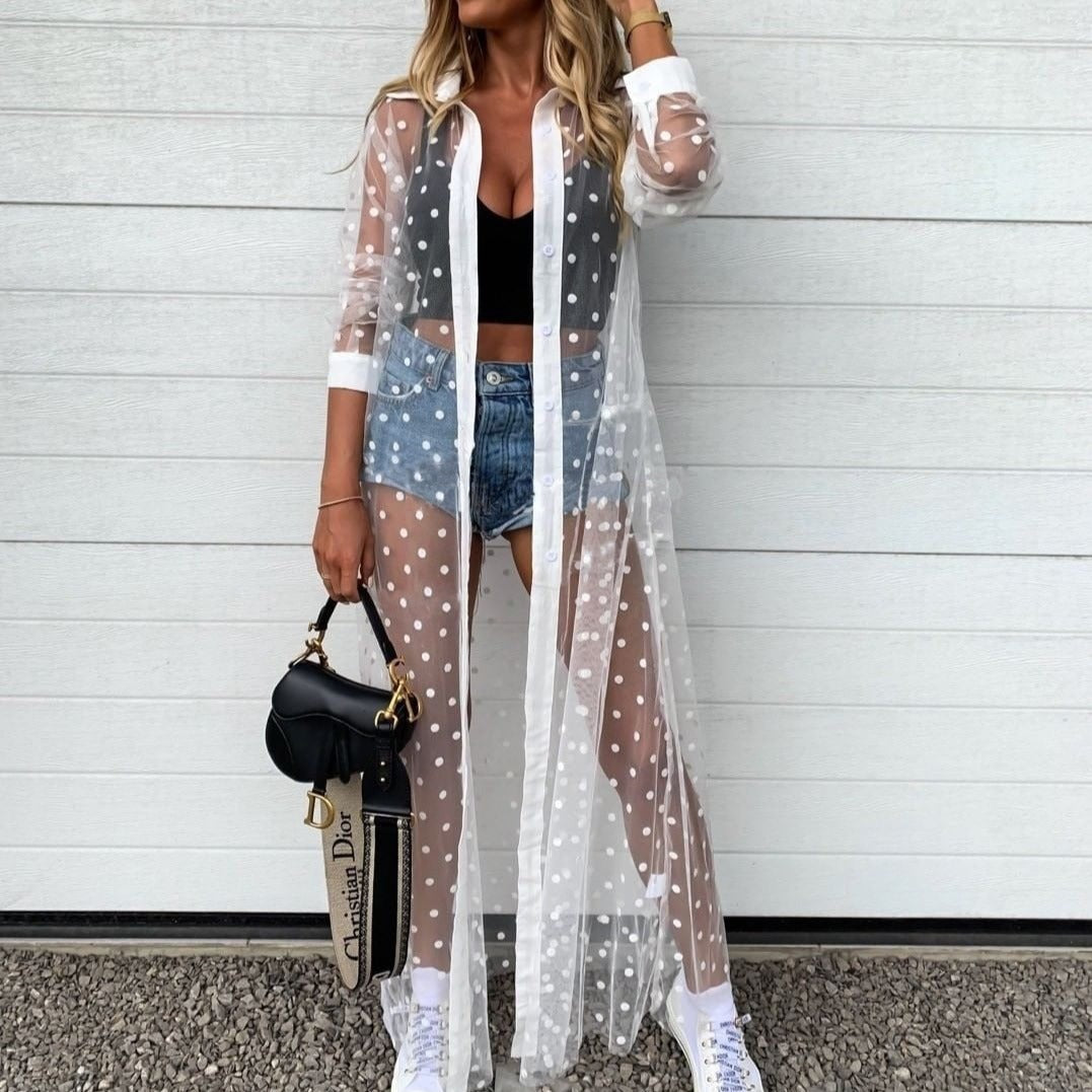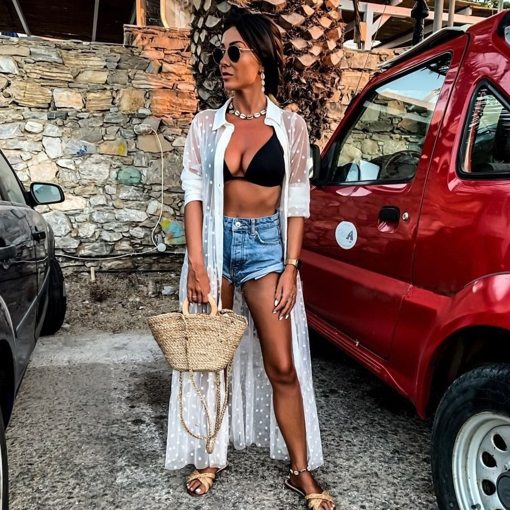 Zde je náš tip na letní dovolenou u moře! Tento kousek s dlouhým rukávem nabízí ochranu před sluncem a větrem. Je vyroben z průsvitné síťoviny, díky čemuž je prodyšný a lehký. Zavinovačka je volná, takže umožňuje volnost pohybu a zároveň kryje. Jeho délka se také perfektně hodí k plážovým plavkám a zajišťuje pohodlí při procházkách po pláži. Zavinovačku můžete nosit i pro každodenní nošení, například jako doplněk k letním šatům nebo topu a kraťasům.