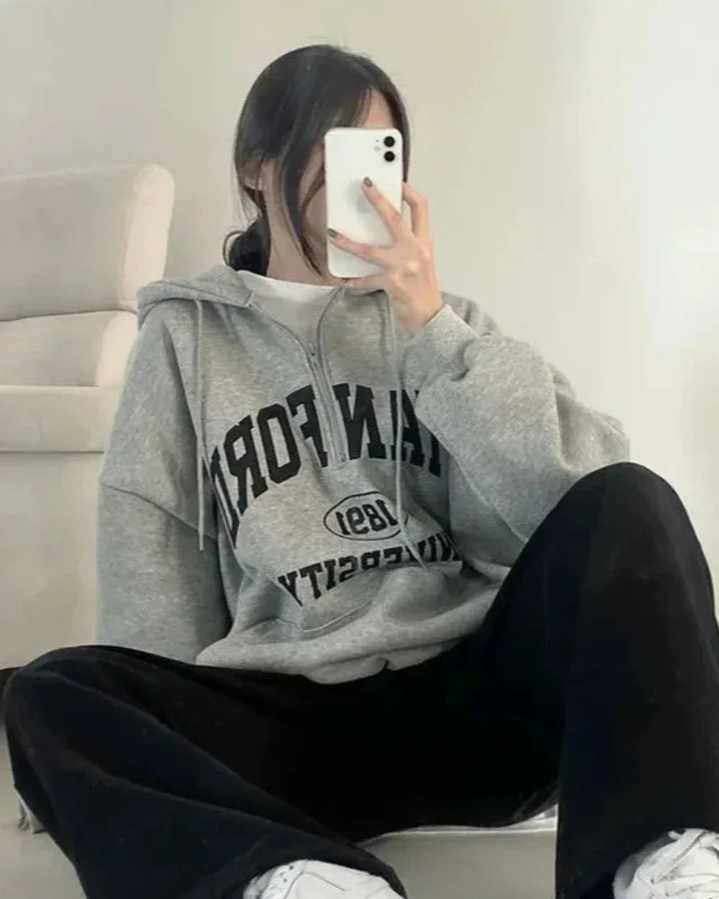 Volná mikina s kapucí Stanfordské univerzity nadměrné velikosti
