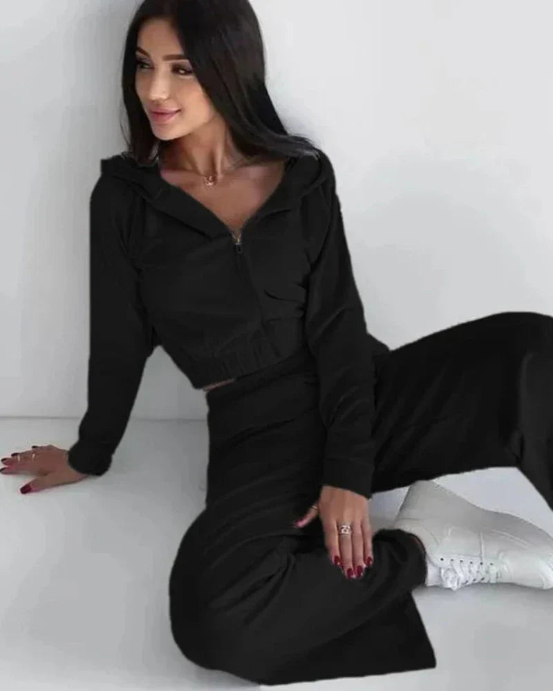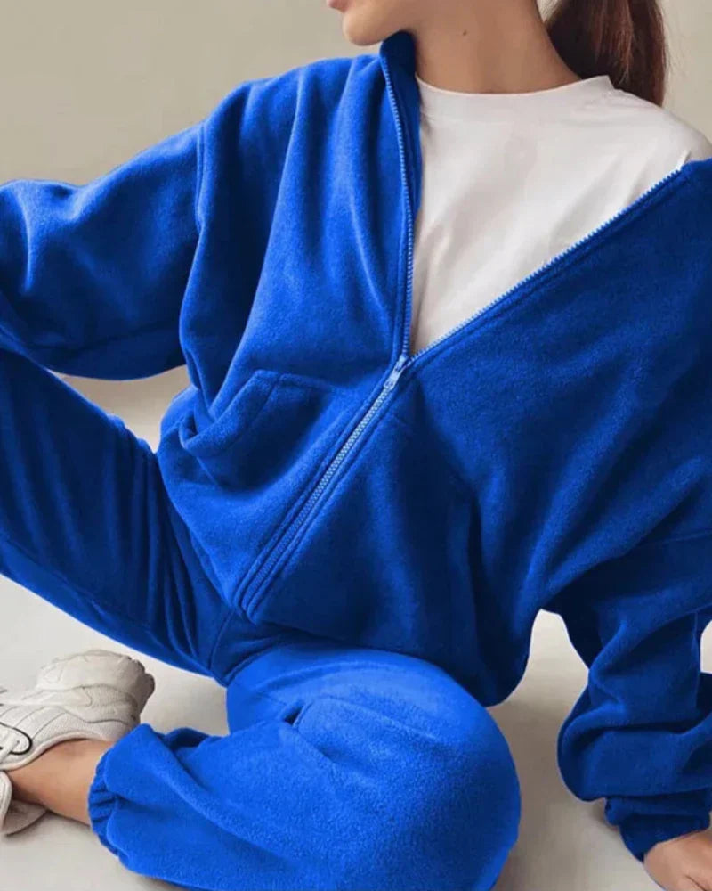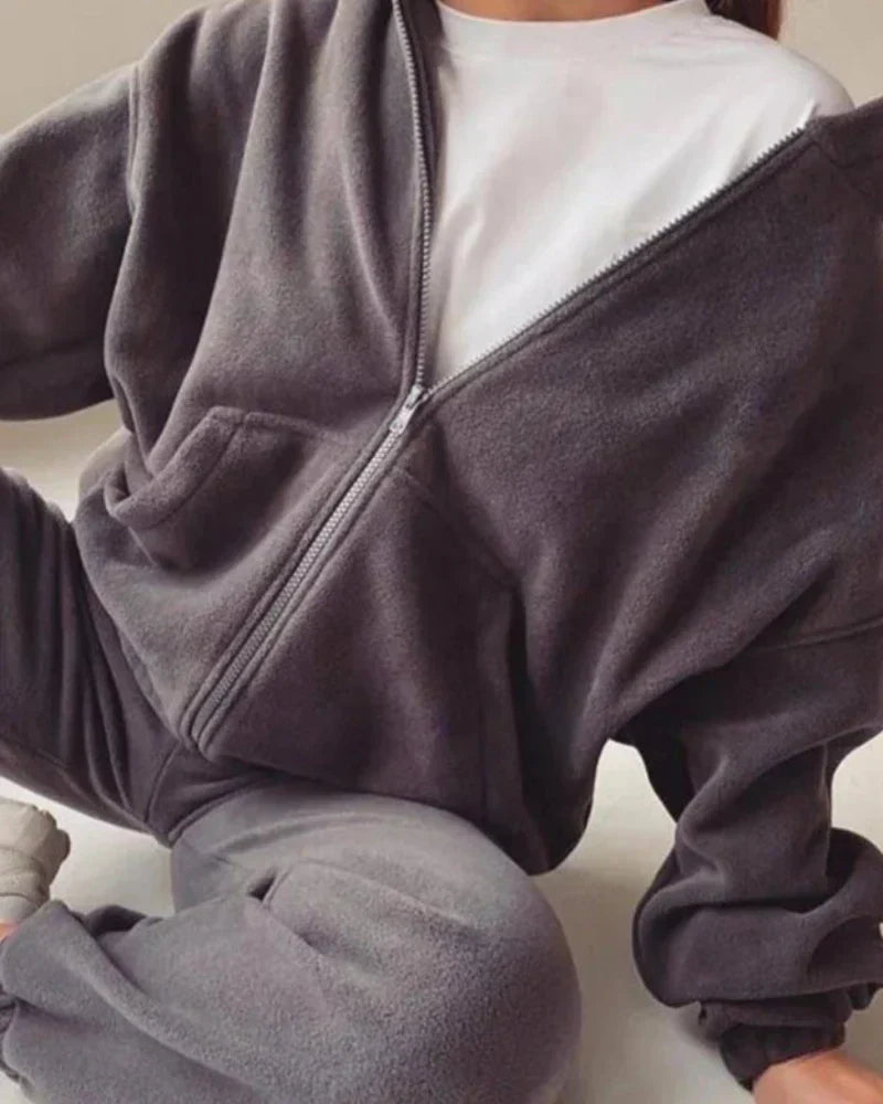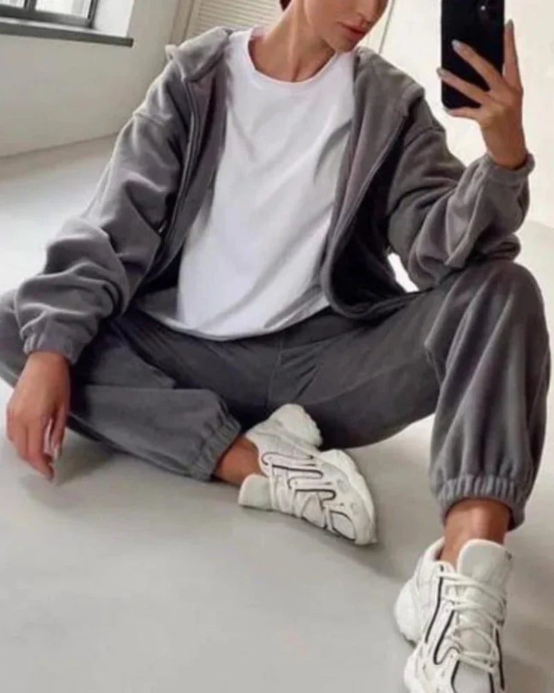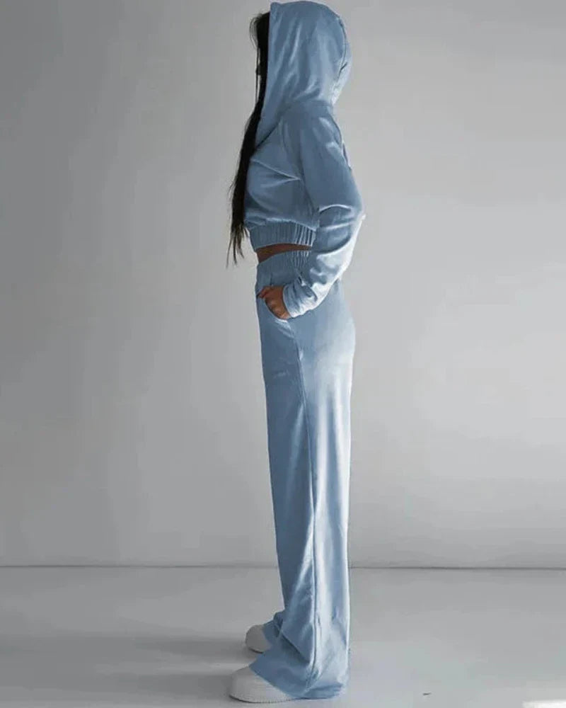 Volná velurová tepláková souprava s krátkou mikinou