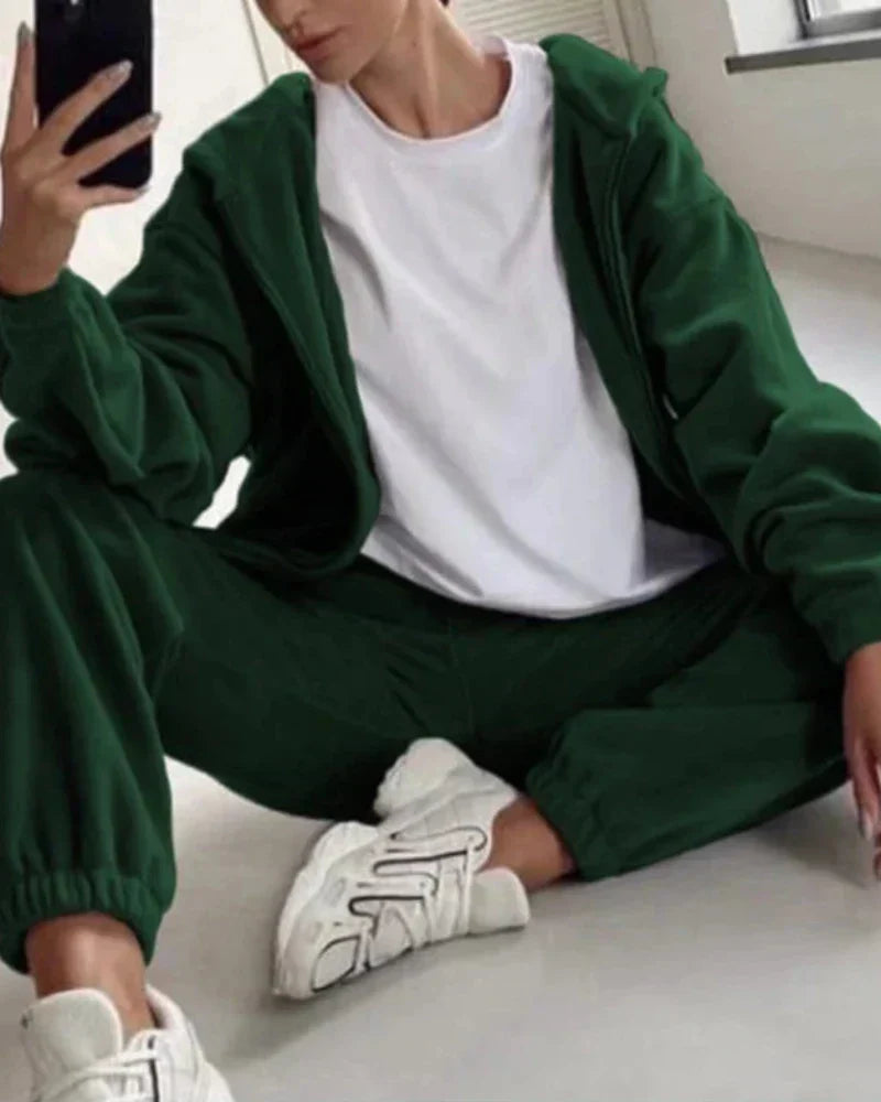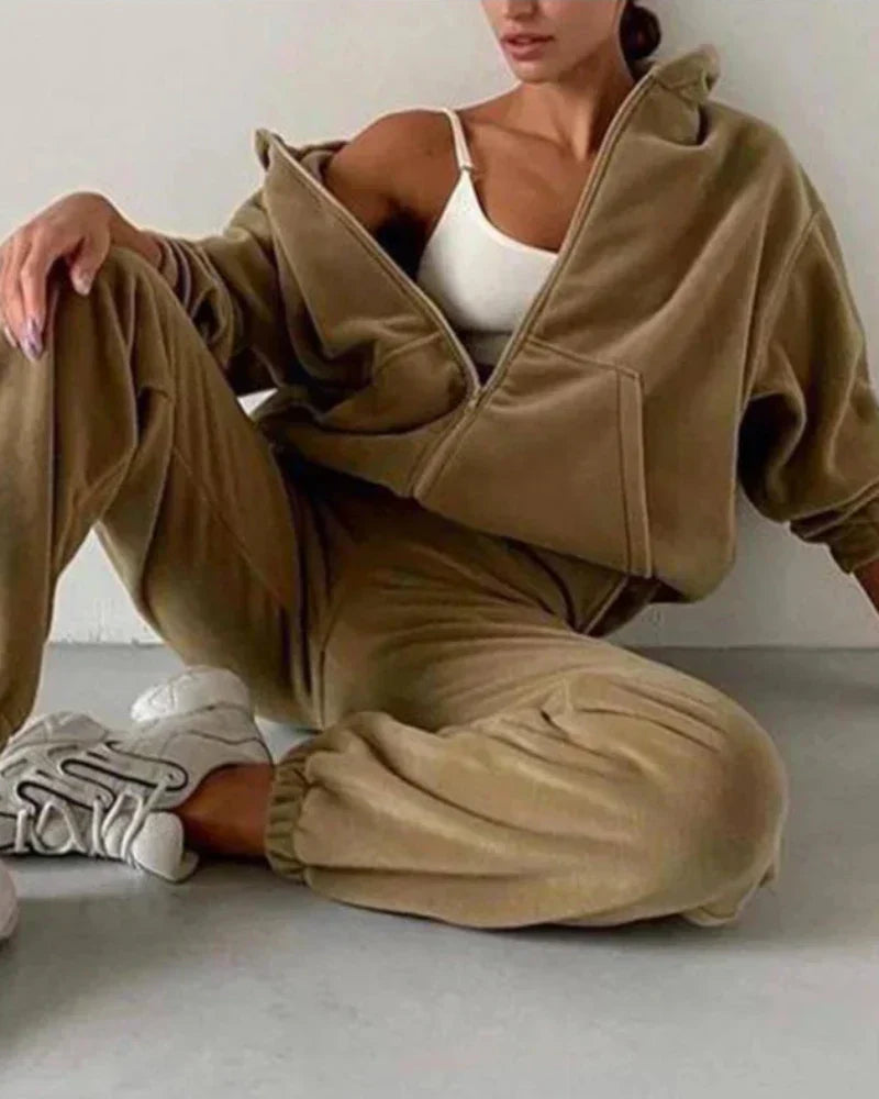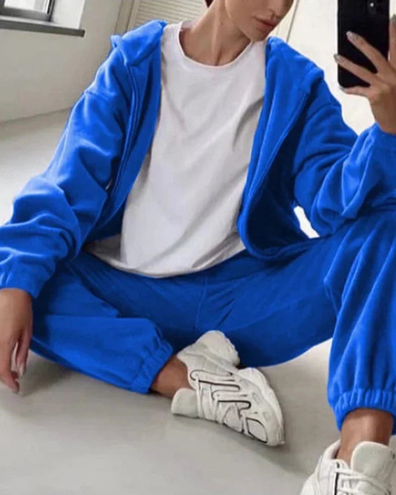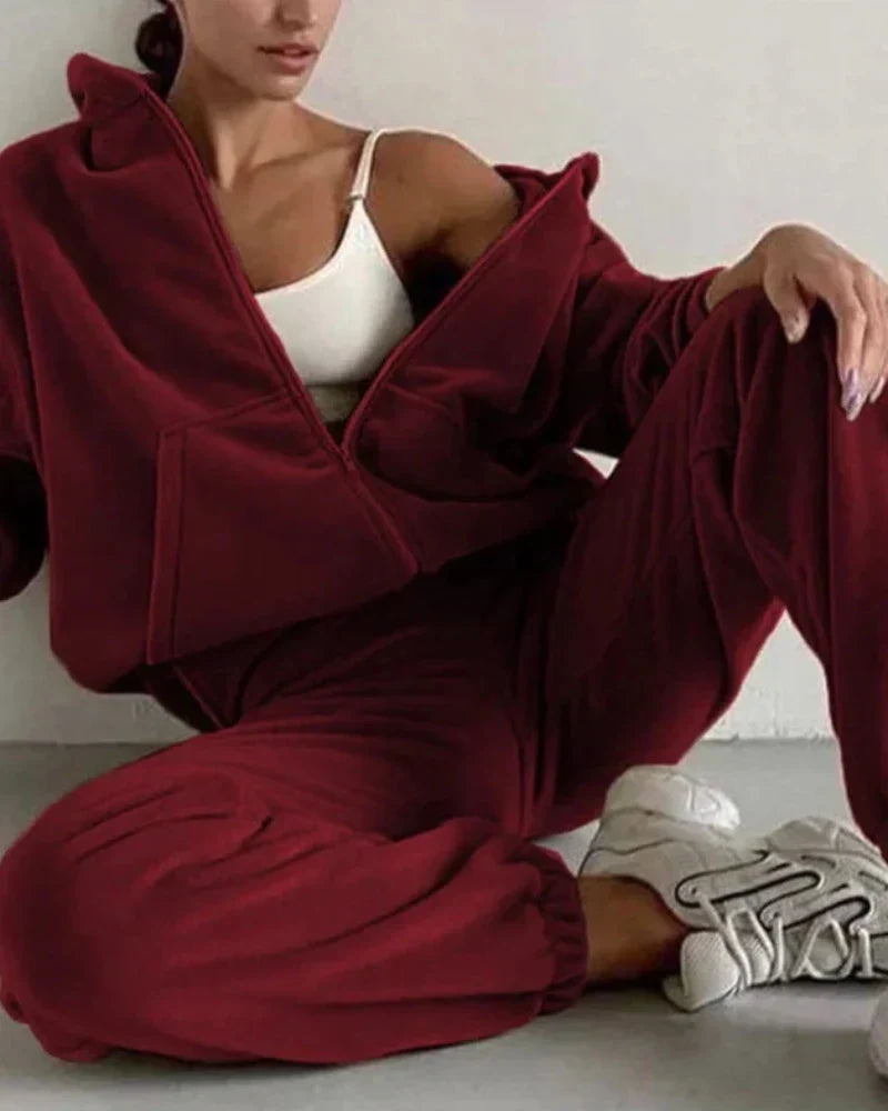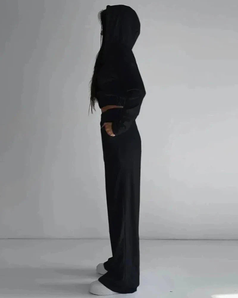 Volná velurová tepláková souprava s krátkou mikinou