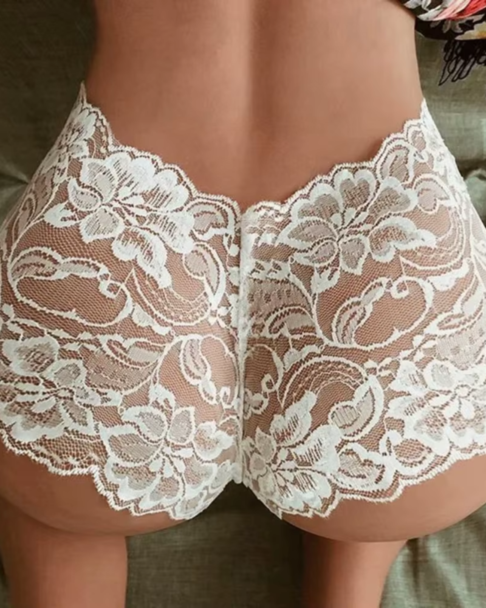 Krajkové kalhotky s vysokým pasem, které zdůrazňují hýždě