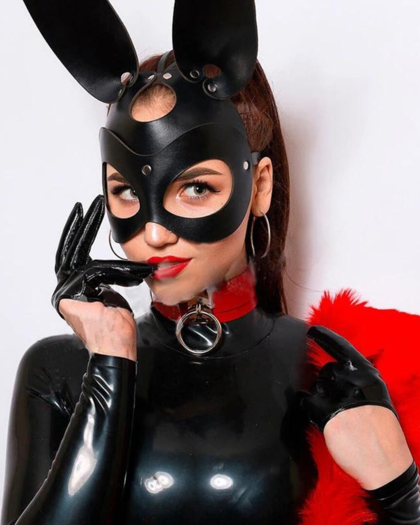 Tato unikátní maska ​​kombinuje smyslnou eleganci s výrazným stylem. Klasický motiv králičích oušek jí dodává tajemný a poutavý sexuální appeal.