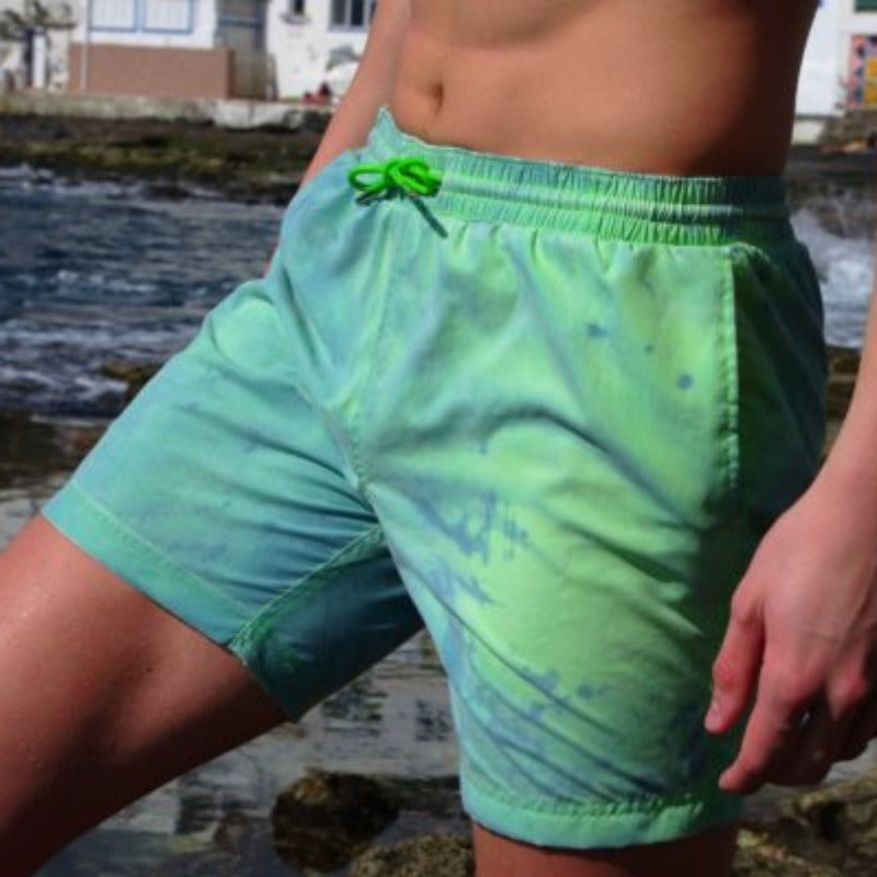 Viditelné kraťasy se vyznačují volným střihem, který umožňuje volnost pohybu a zároveň přiléhají, aby se zabránilo nechtěnému sklouznutí během fyzické aktivity. Kraťasy mají v pase stahovací šňůrku, která umožňuje individuální přizpůsobení. Mají také zajímavou vlastnost: změnu barvy v závislosti na teplotě nebo vystavení vodě. V závislosti na teplotě vody mohou kraťasy měnit barvu, což dodává další vizuální efekt.