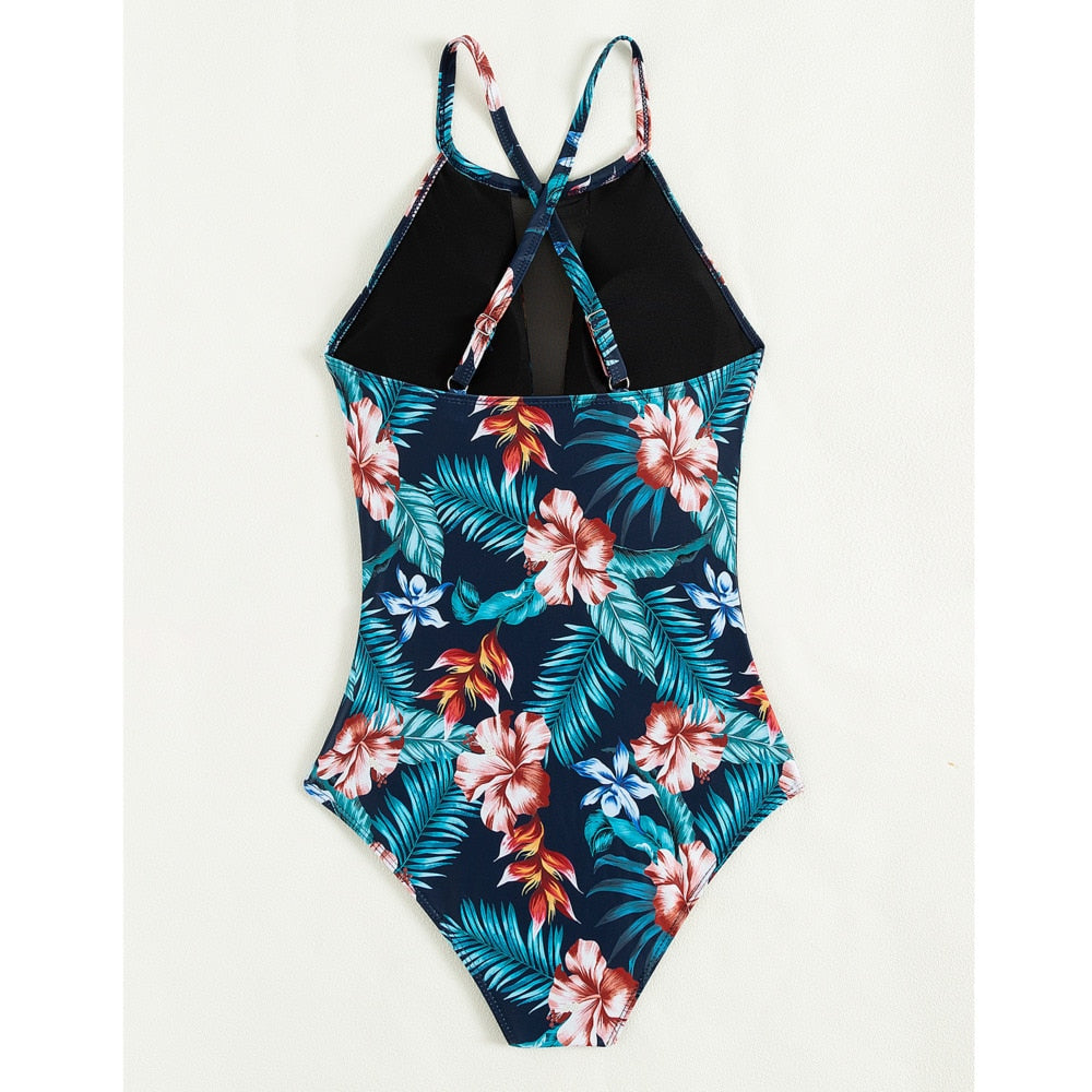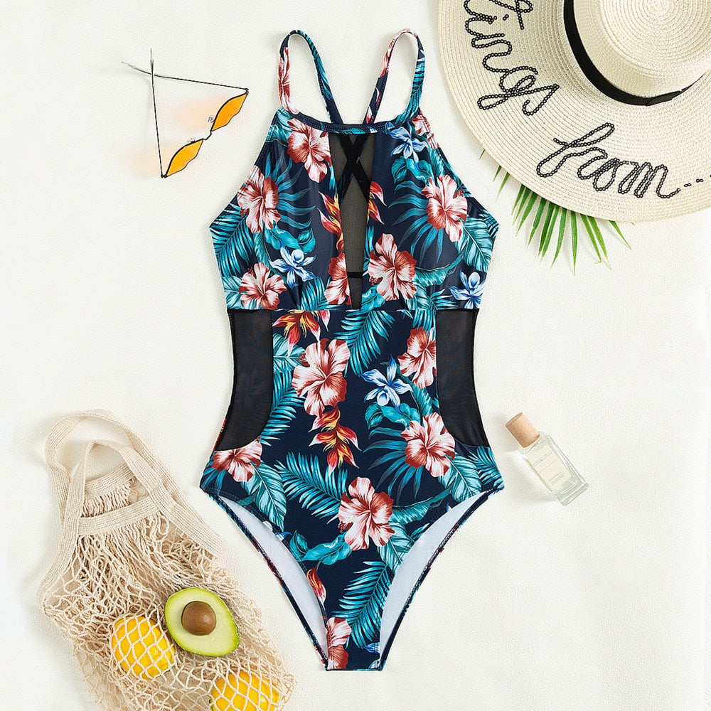 Jednodílné plavky monokini s květinovým vzorem a síťovinou