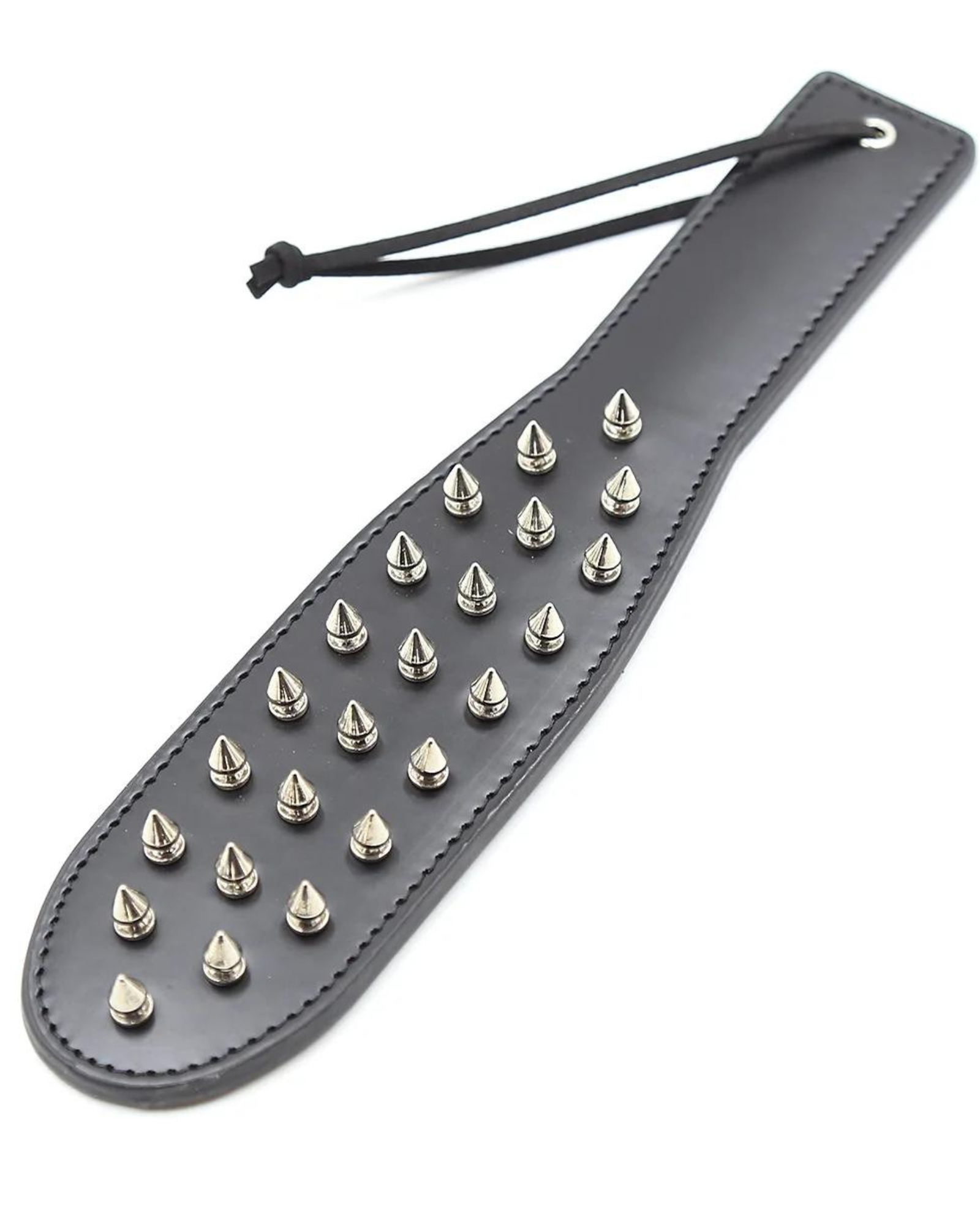 Tato pomůcka kombinuje eleganci s intenzivními pocity. Vyrobena z ekokůže, zajišťuje nejen odolnost, ale i pohodlí při používání bez ohledu na intenzitu zážitku. Kovové cvočky přinášejí nový rozměr stimulace a zesilují vzrušení a pocity.