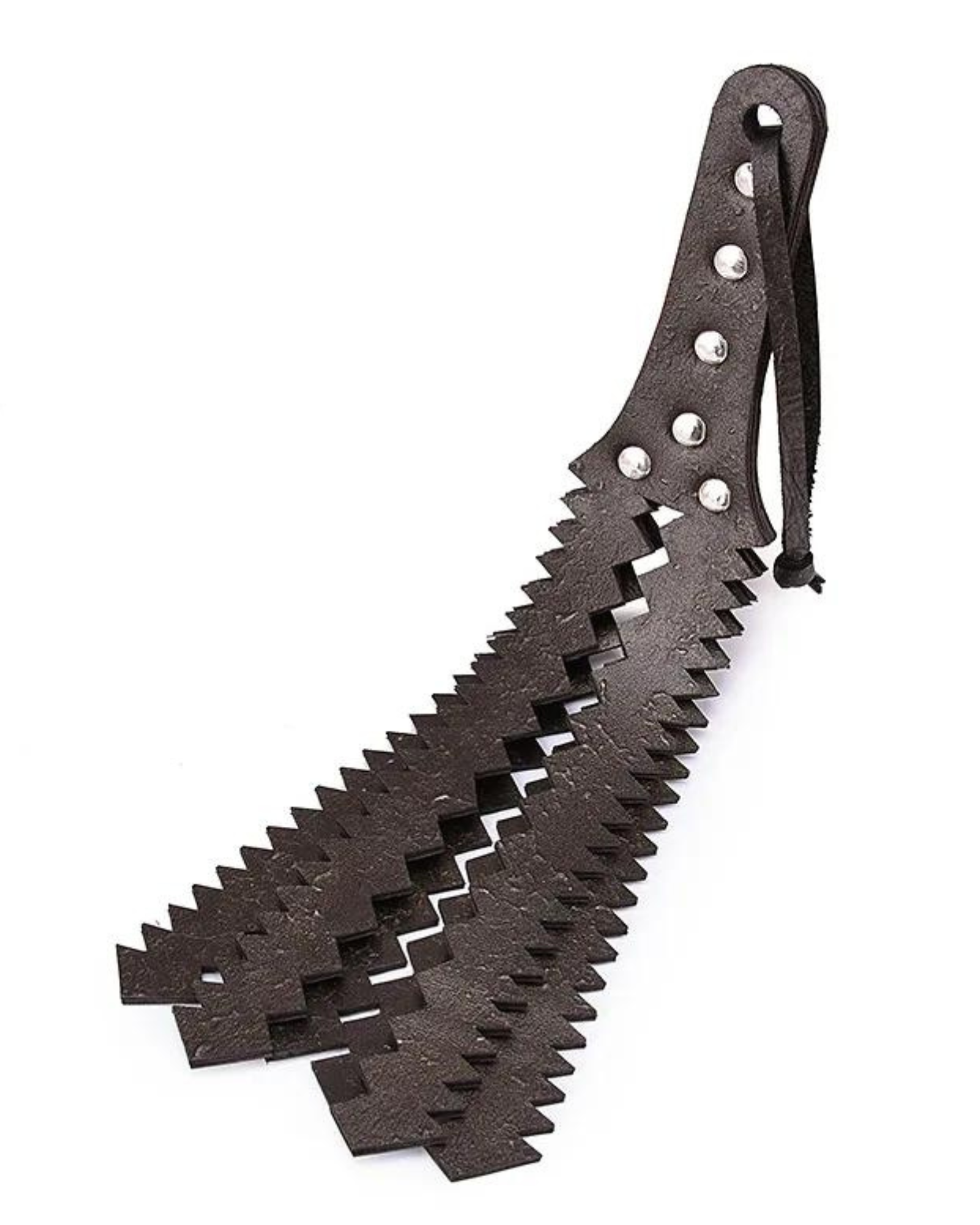 Tento bič je perfektní volbou pro milovníky vytříbených pocitů. Zoubkované popruhy vyrobené z nejkvalitnější kůže nabízejí intenzivní zážitek, který pozvedne každý okamžik na novou úroveň vzrušení. Rukojeť s kovovými detaily nejenže dodává celému biči robustní a zároveň elegantní vzhled, ale také zajišťuje bezpečný a pohodlný úchop. Díky pečlivě navržené konstrukci kombinuje bič estetiku s funkčností a stává se nezbytným prvkem každé smyslné kolekce.