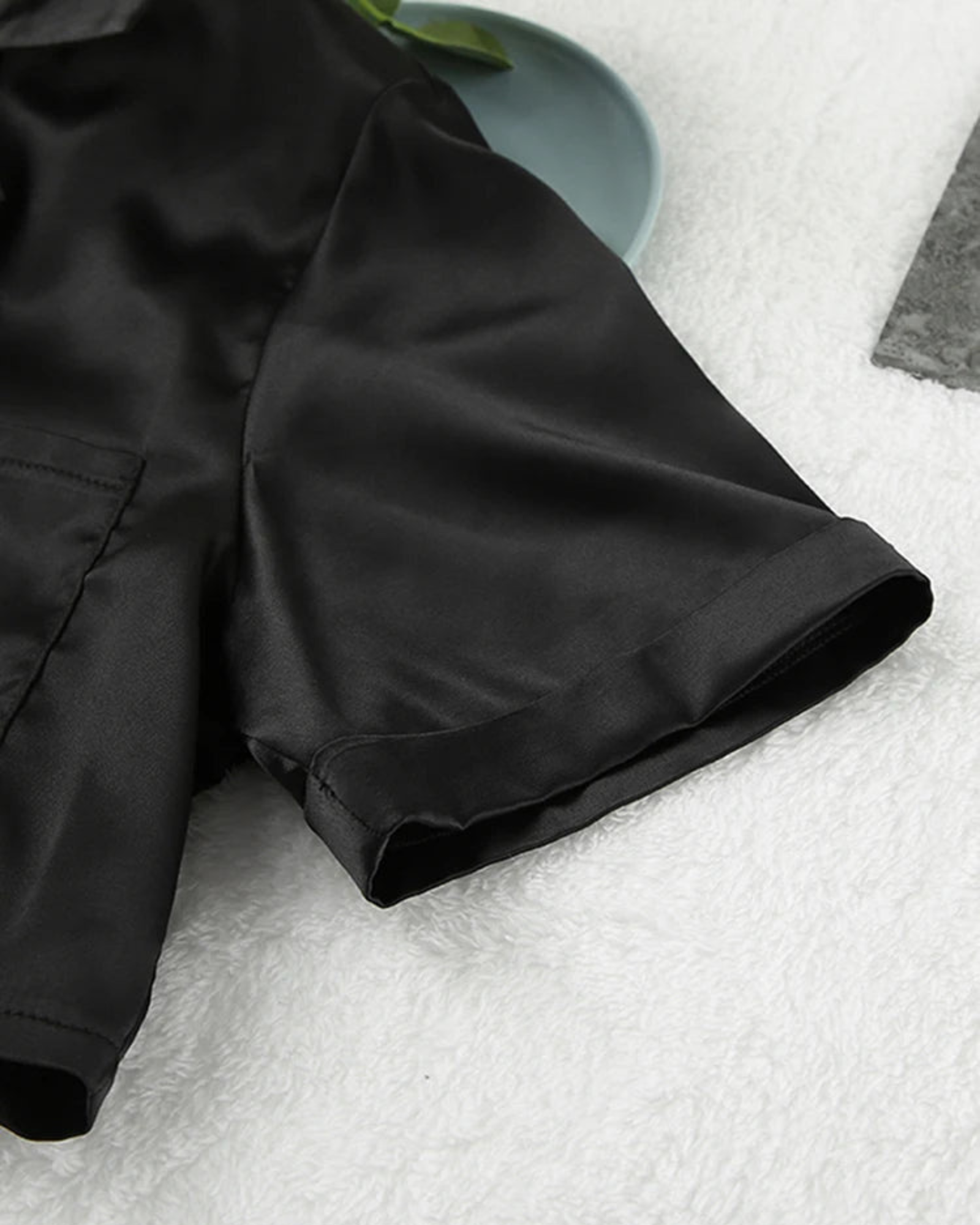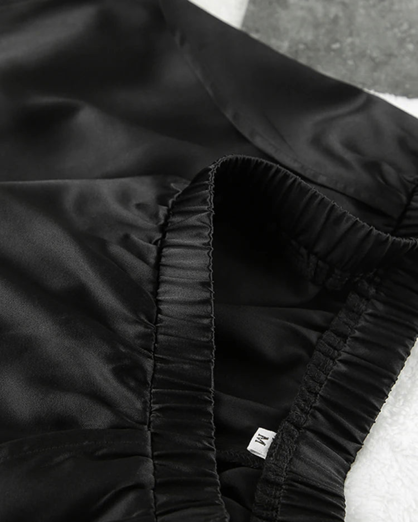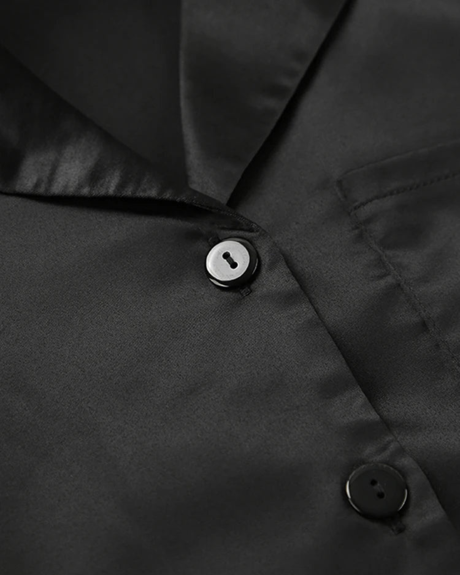 Přeneste se do světa pohodlí a elegance s tímto pyžamem. Krátký, volný střih vám dodá pocit uvolnění, zatímco saténový materiál jemně obepíná vaše tělo a zdůrazňuje jeho přirozenou krásu. Elegantní límec dodává eleganci a elastický pas zajišťuje perfektní střih.