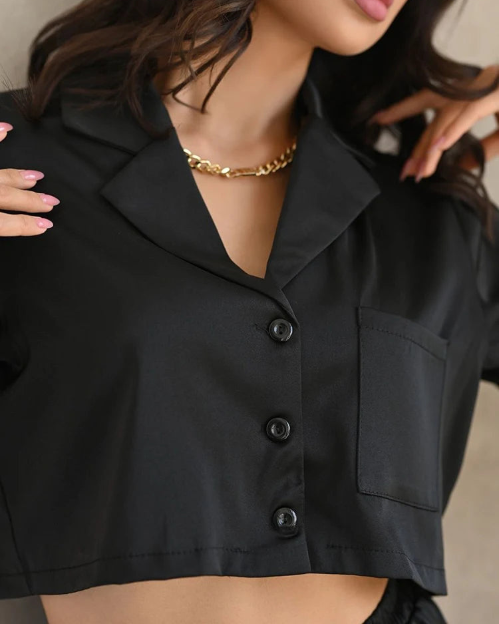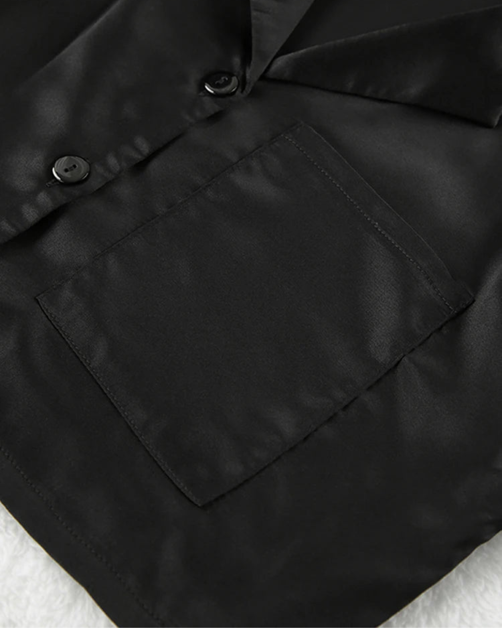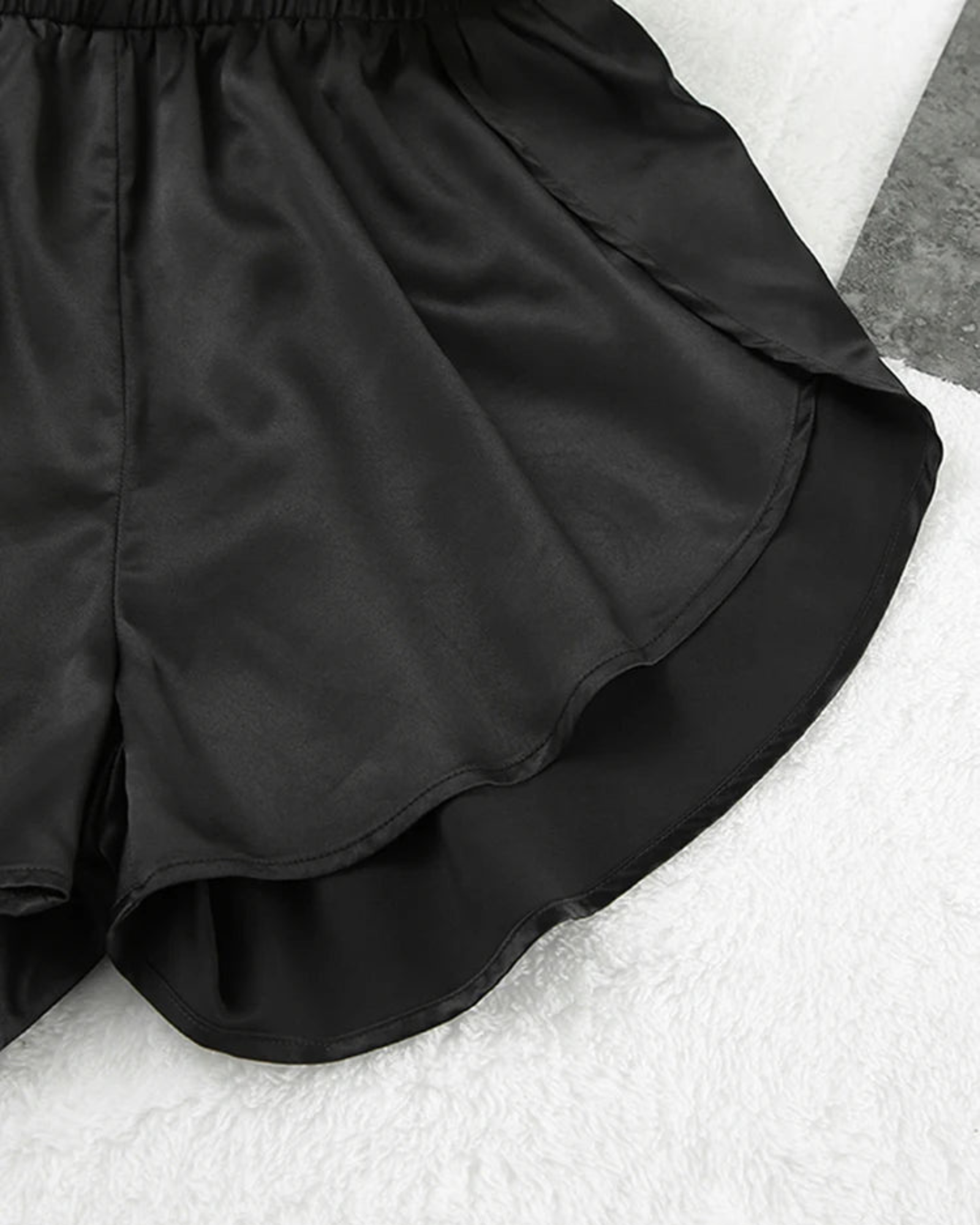 Přeneste se do světa pohodlí a elegance s tímto pyžamem. Krátký, volný střih vám dodá pocit uvolnění, zatímco saténový materiál jemně obepíná vaše tělo a zdůrazňuje jeho přirozenou krásu. Elegantní límec dodává eleganci a elastický pas zajišťuje perfektní střih.
