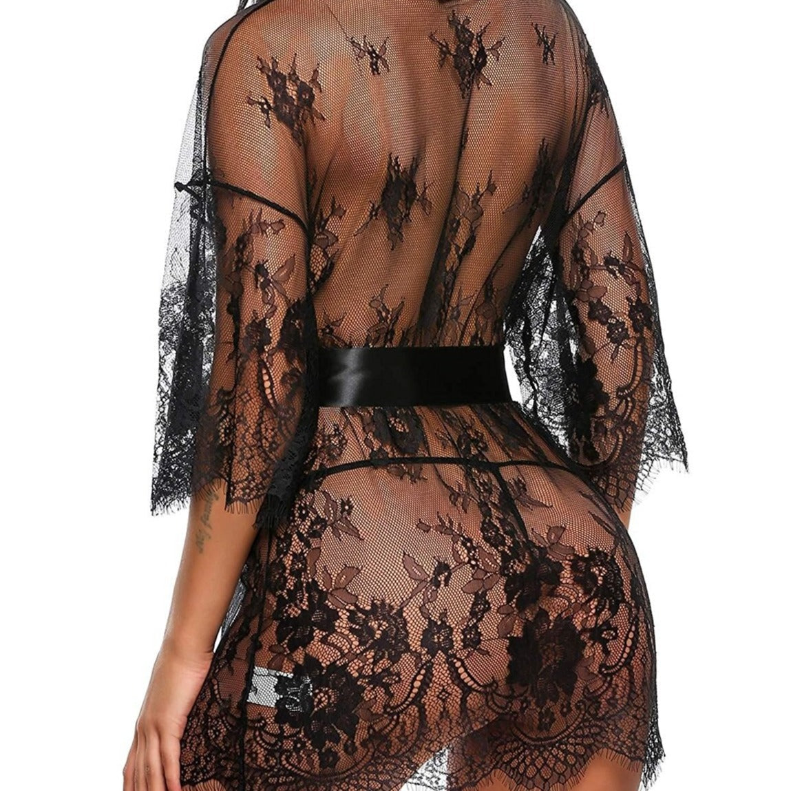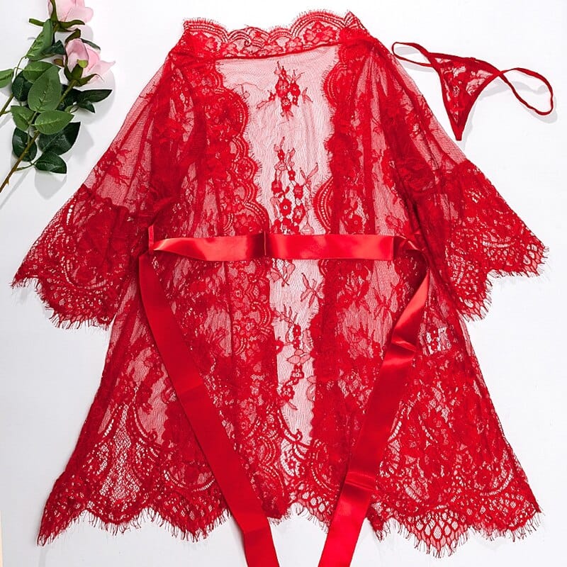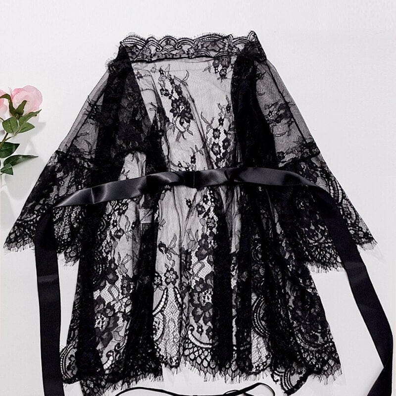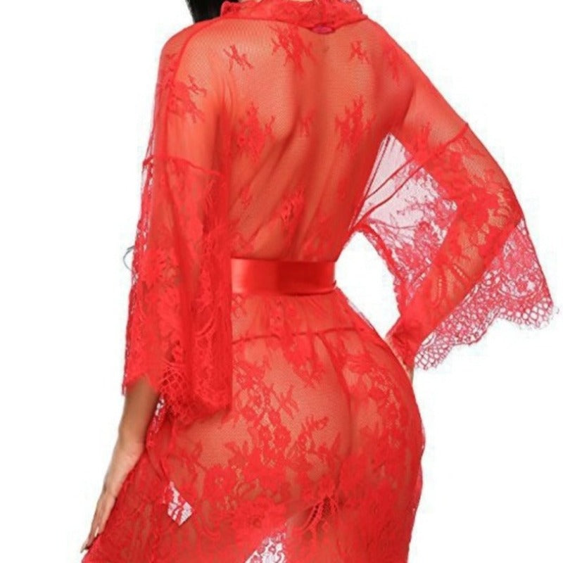 Průsvitný krajkový župan s ozdobným páskem