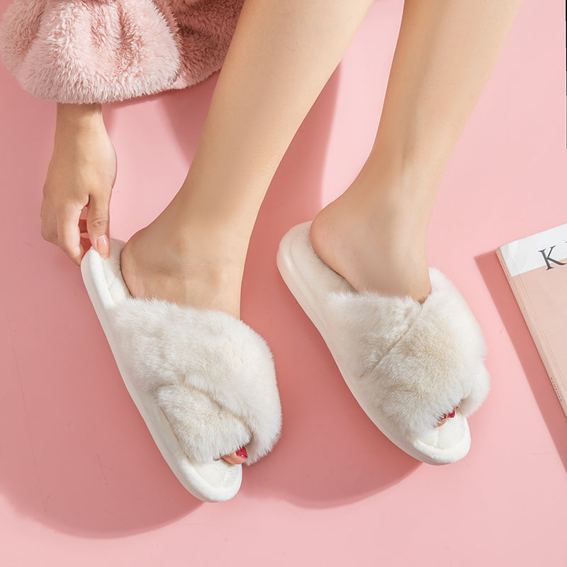 Tyto pantofle, které jsou k dispozici v různých odstínech, včetně šedé, růžové, bílé a hnědé, nejenže poskytují teplo a měkkost, ale také stylový design, který je ideální pro každodenní nošení. Jejich nadýchaná textura a kožíšek vám pohodlně zahalí nohy a nazouvací design usnadňuje nazouvání. Tyto pantofle jsou ideální pro lenošná odpoledne doma.