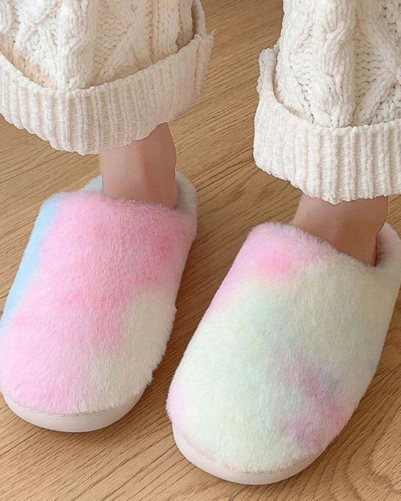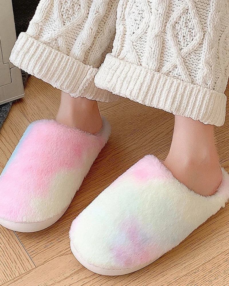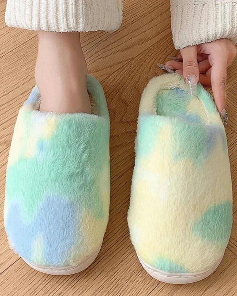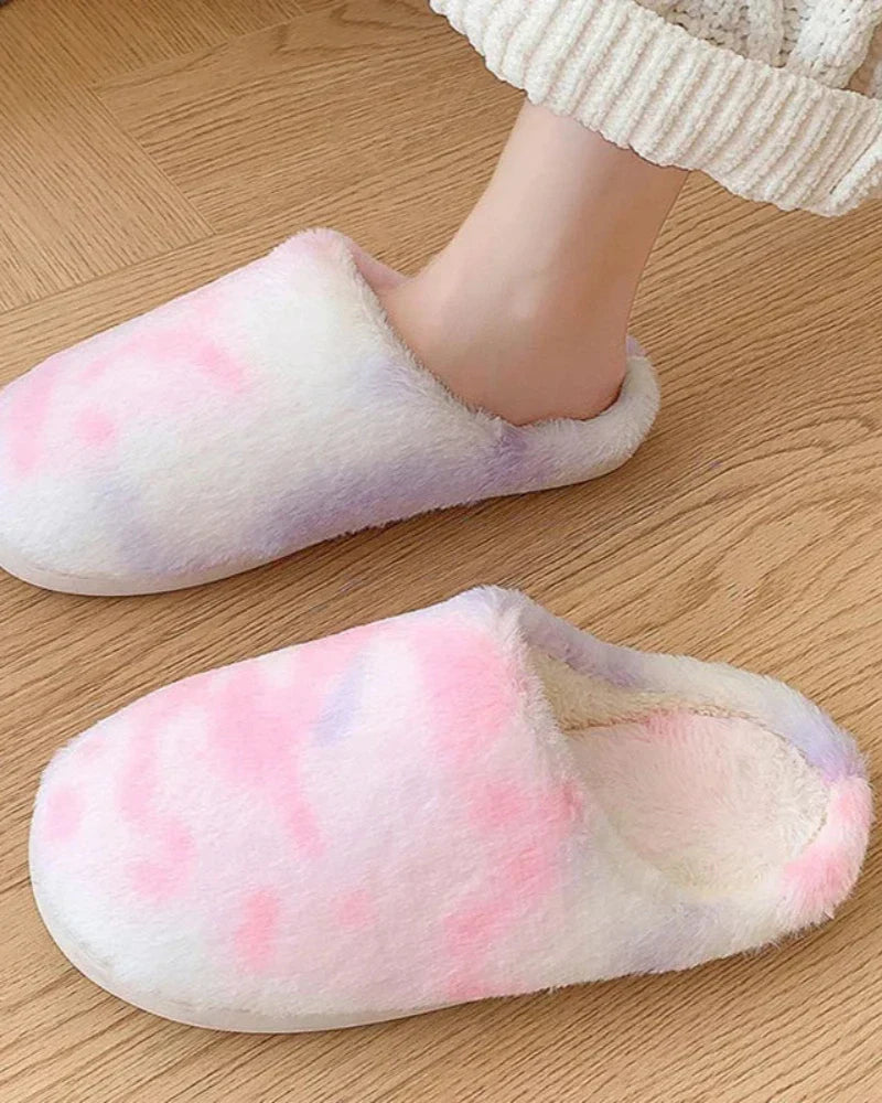 • Měkké a nadýchané pantofle s batikovaným vzorem pro celodenní pohodlí.