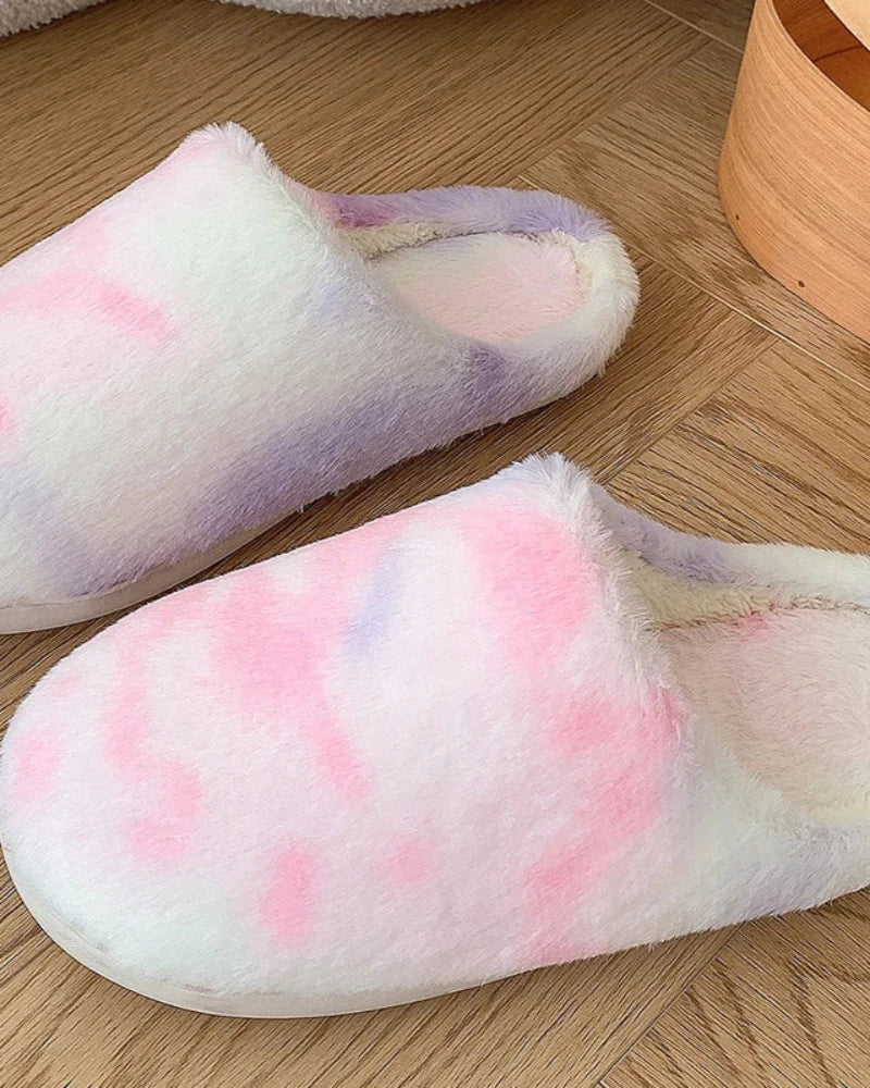 Batikované chlupaté pantofle
