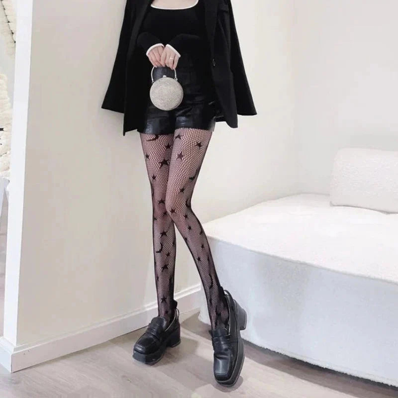 Síťované punčocháče s hvězdicovým vzorem jsou perfektním doplňkem pro ty, kteří chtějí svému outfitu dodat třpyt. Tyto vzorované síťované punčocháče jsou k dispozici v elegantní černé a bílé barvě, takže jsou ideální volbou pro různé příležitosti, jako jsou svatby, maturitní plesy, zásnuby, běžné nošení, večírky nebo Valentýn. Jejich matný povrch dodává nádech jemnosti, zatímco výrazný hvězdicový vzor jim propůjčuje jedinečné kouzlo. Vytvořte si s těmito síťovanými punčocháči jedinečný vzhled, který upoutá pozornost a dodá vašemu šatníku nádech magie.