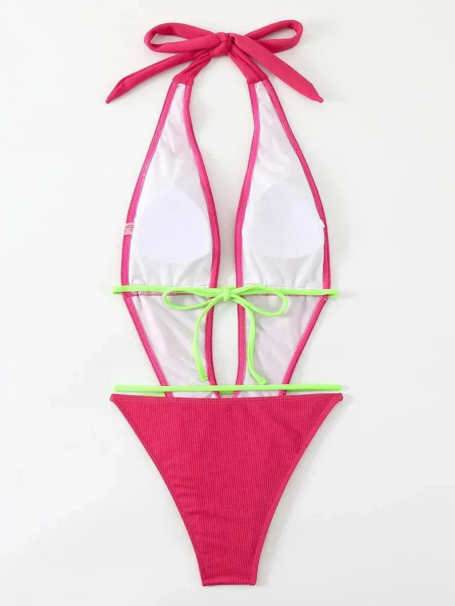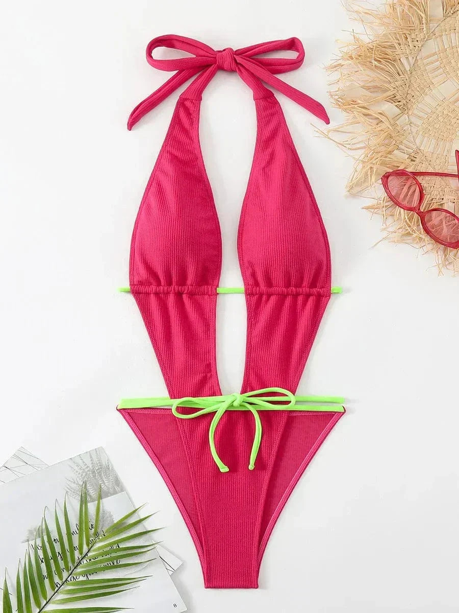 Objevte svůj letní styl s těmito růžovými plavkami, které kombinují eleganci s moderností. Díky hlubokému výstřihu a odhaleným zádům se budete cítit sebevědomě a atraktivně na pláži i u bazénu.