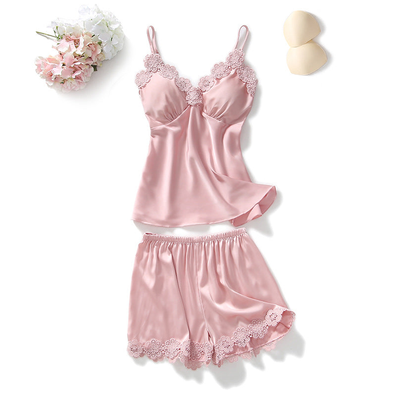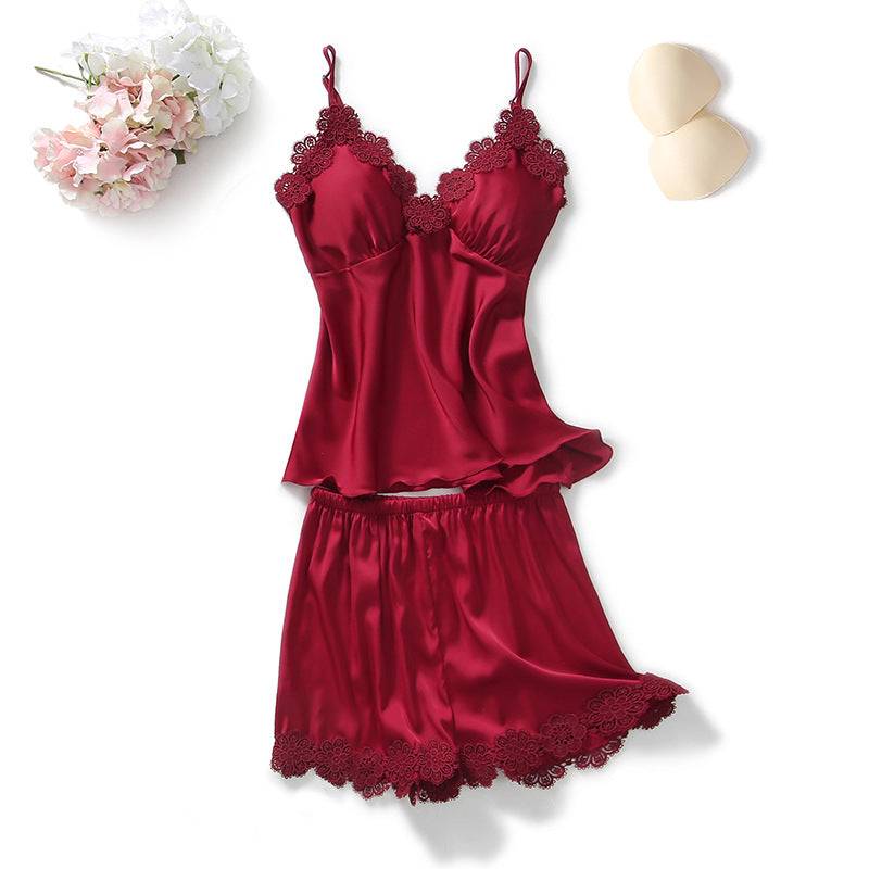 Dámské saténové pyžamo s ramínky a krajkou