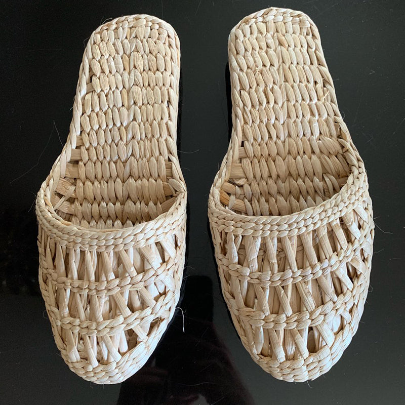 Dopřejte svým nohám hýčkání a zažijte skutečné pohodlí v našich béžových, potažených slaměných žabkách. Díky svému nazouvacímu designu jsou neuvěřitelně pohodlné a praktické a tkaný vzor jim dodává jedinečné kouzlo. Tyto žabky jsou ideální pro domácí použití, ale jejich stylový vzhled z nich dělá také perfektní doplněk k letním outfitům na terasu nebo na zahradu. Díky přírodním materiálům, ze kterých jsou vyrobeny, jsou prodyšné a udrží vaše nohy svěží i v nejteplejších dnech. Béžová barva je navíc všestrannou volbou, která doplní jakýkoli interiér a styl, a zajistí, že vám tyto žabky vydrží mnoho sezón.