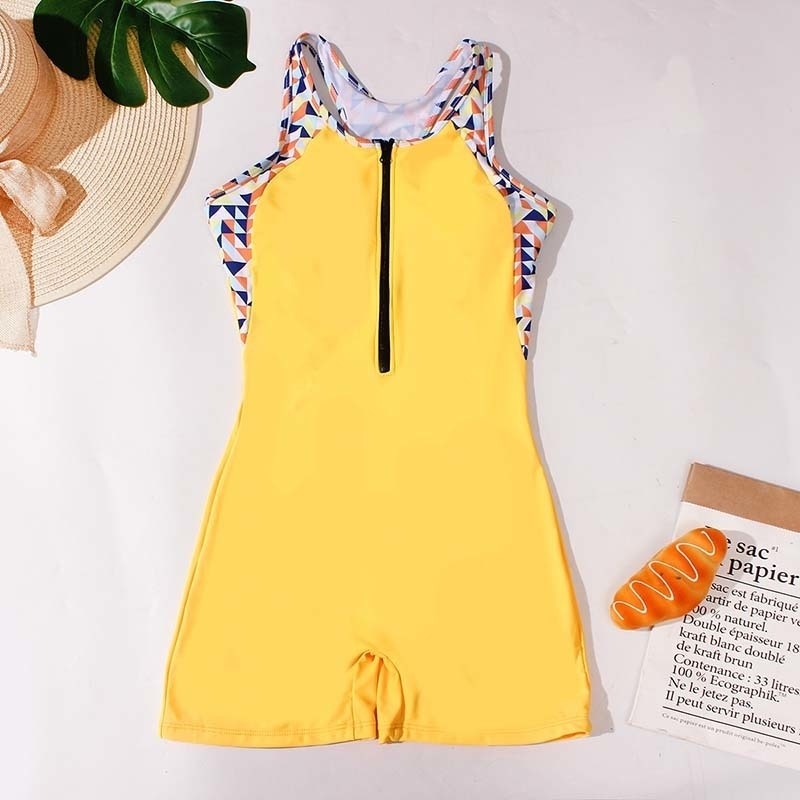 Sportovní jednodílné plavky s kraťasy s geometrickým vzorem