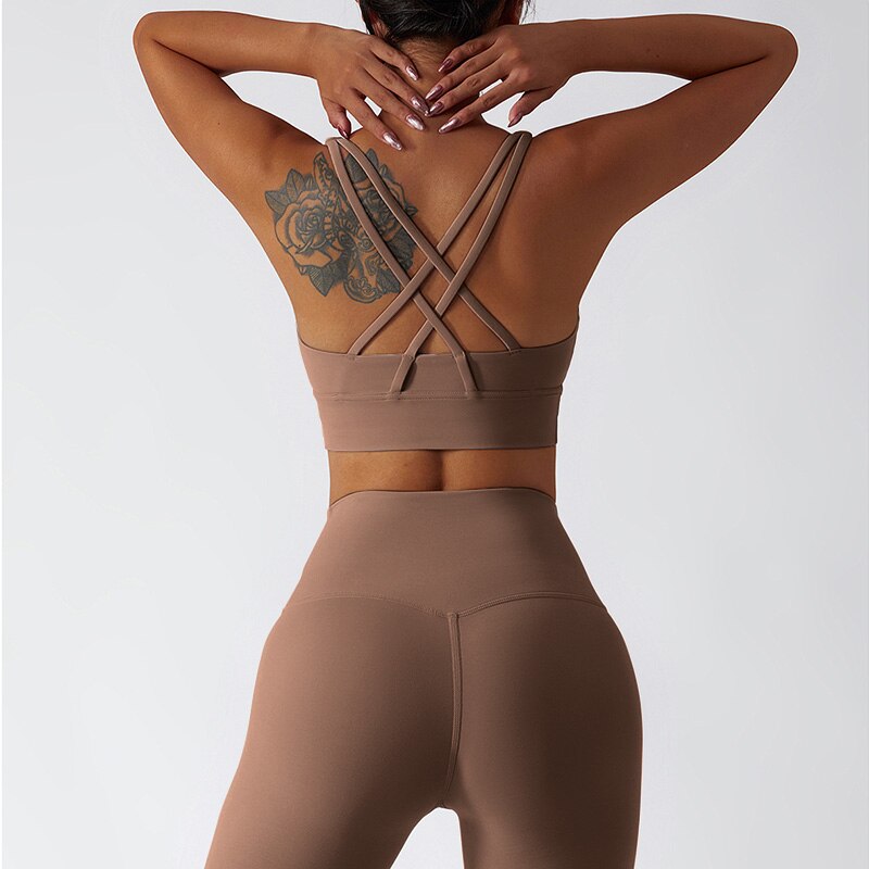 Sportovní set topu s překříženými ramínky a legín