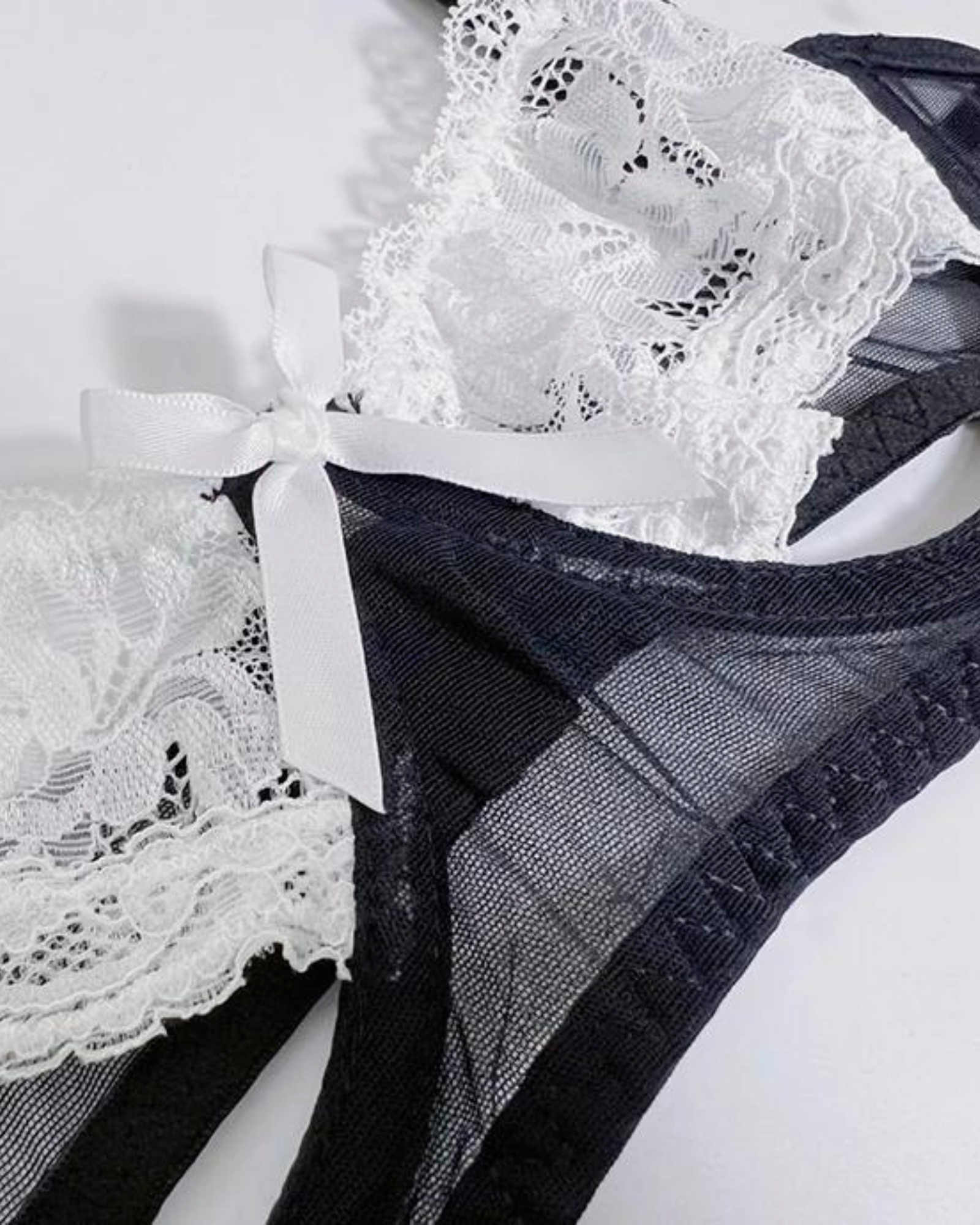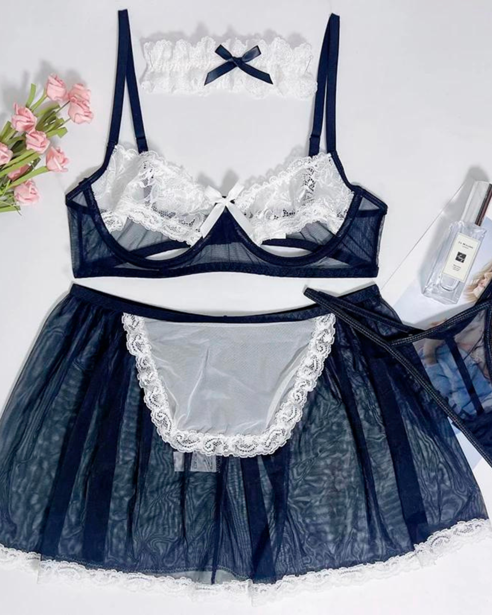 Tato sada v sobě spojuje smyslnou eleganci s decentní provokací. Je vyrobena z jemné krajky a průsvitné látky a dokonale zdůrazní vaše nejlepší rysy.
