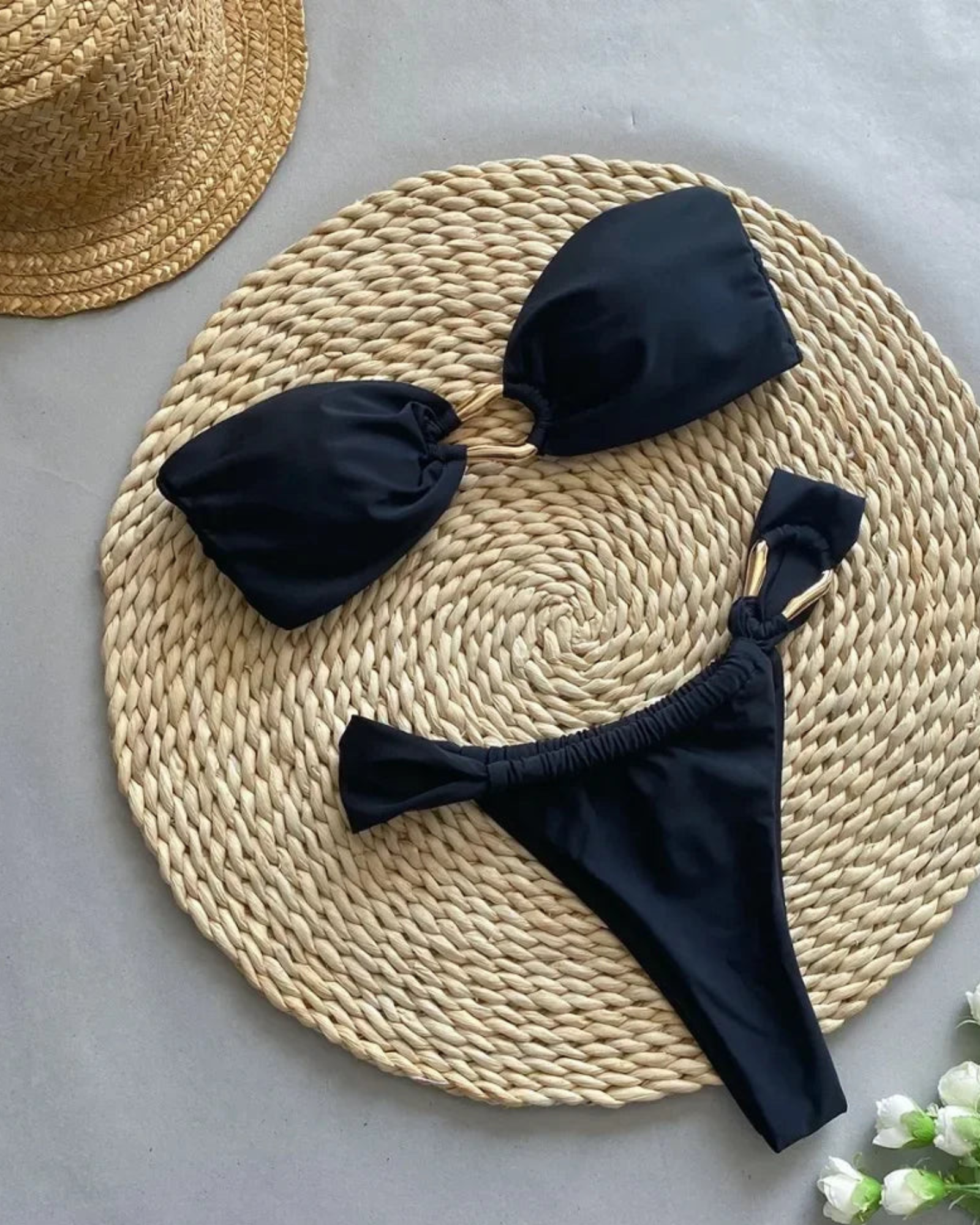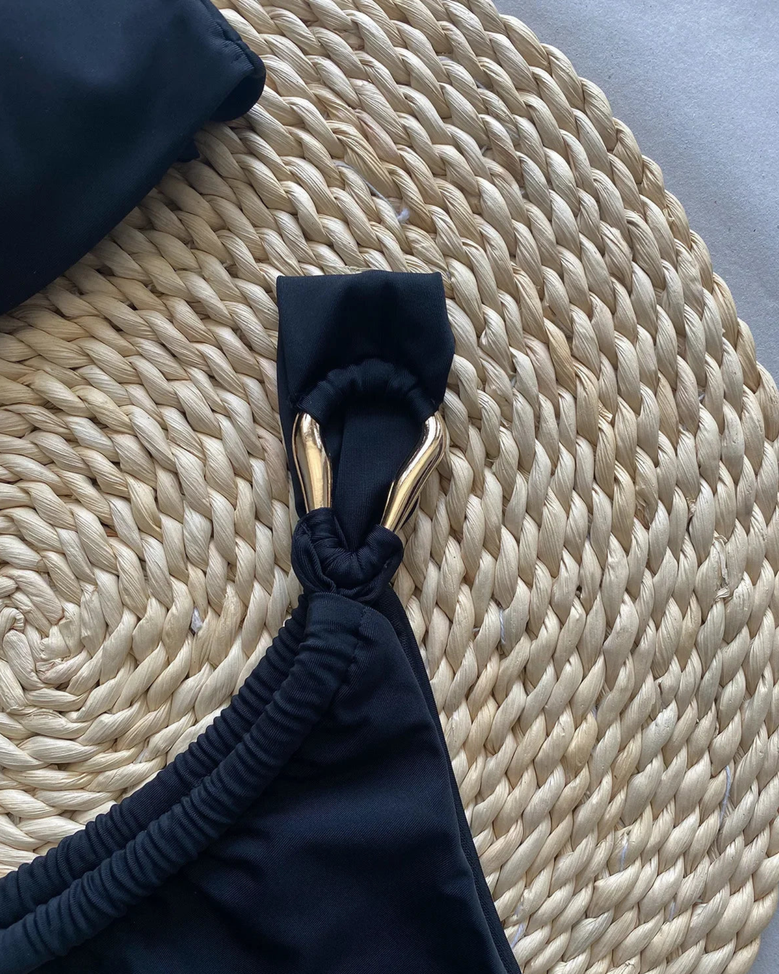 Tyto plavky jsou fúzí elegance a moderního stylu. Smyslné výřezy a decentní kovové detaily dokonale zdůrazňují vaši postavu a dodávají vám úchvatný vzhled. Jsou vyrobeny z měkkého materiálu, perfektně padnou a zajišťují pohodlí jak na pláži, tak u bazénu.