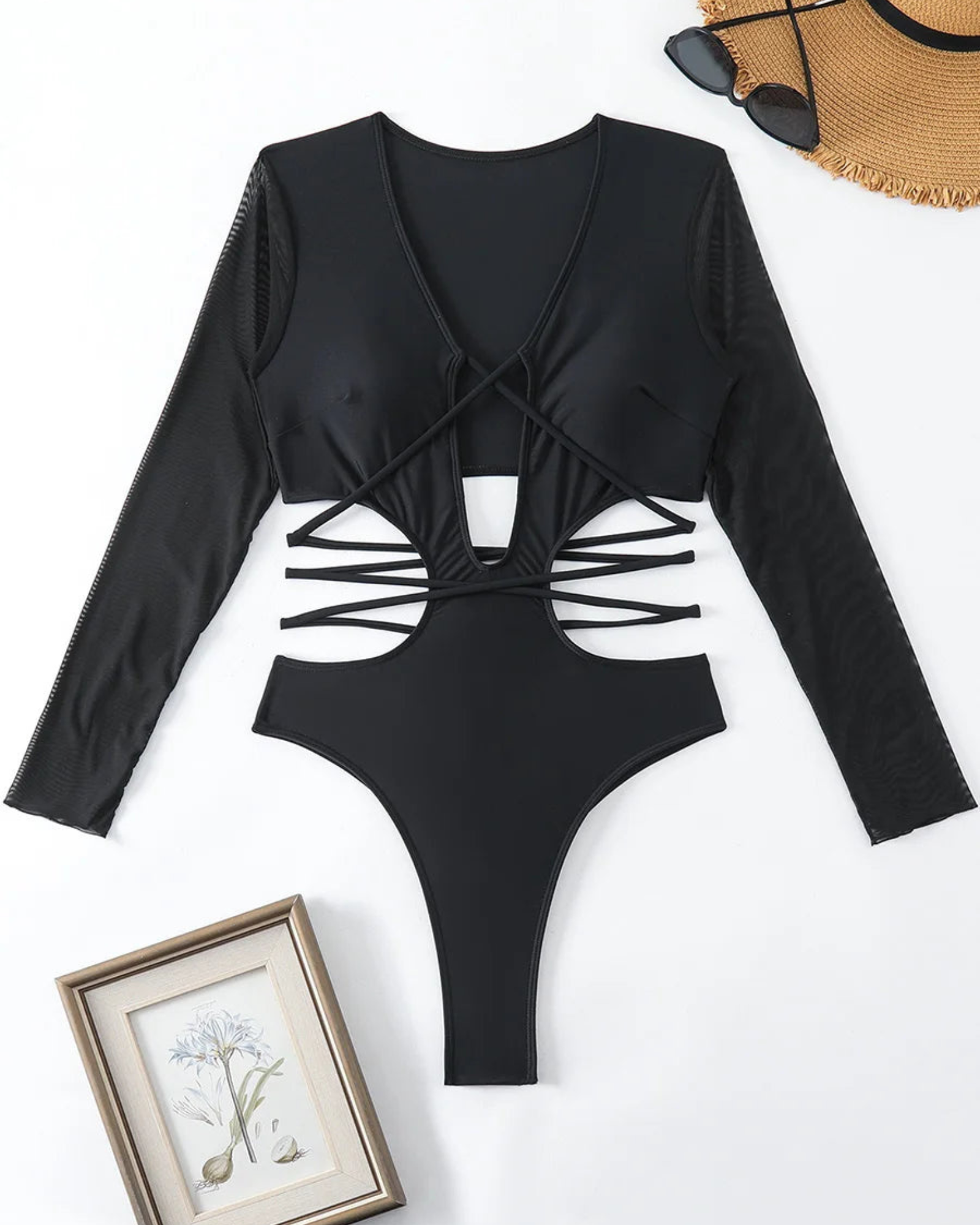 Tyto plavky jsou perfektní volbou pro ženy, které chtějí spojit eleganci s nádechem smyslnosti. Dlouhé rukávy z vzdušné látky a výrazné výstřihy přitahují pozornost a zdůrazňují vaše nejlepší rysy. Otevřená záda a pečlivě navržená ramínka dodávají plavce jedinečný styl a zároveň zajišťují pohodlí.