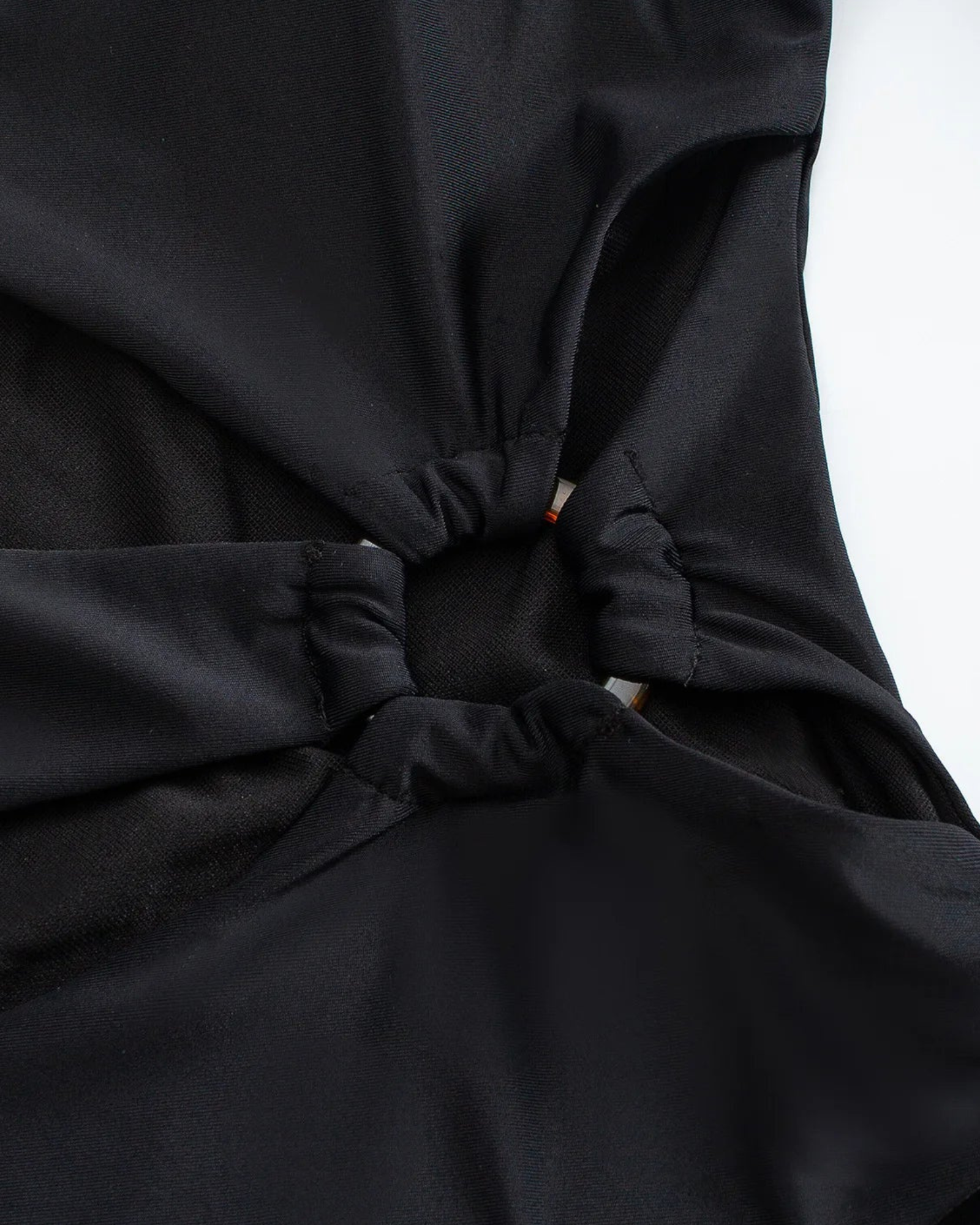 Tyto jednodílné plavky kombinují moderní styl s elegancí. Asymetrické výřezy a jantarové detaily vytvářejí smyslnou siluetu. Nastavitelná ramínka zajišťují perfektní střih a celodenní pohodlí.
