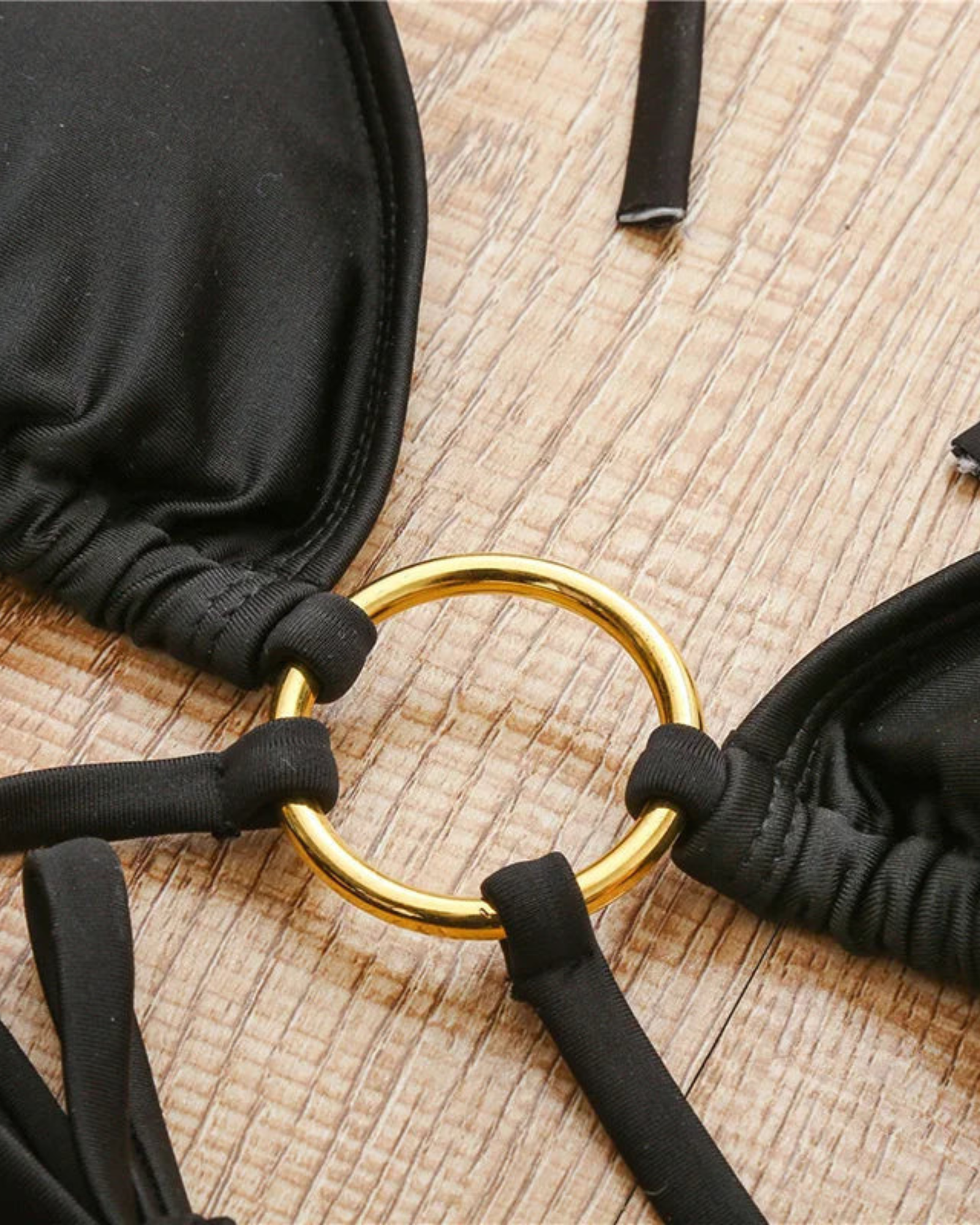 Tyto plavky jsou ideální pro ženy, které chtějí decentně zdůraznit své křivky. Nastavitelná ramínka vám umožní přizpůsobit si je postavě a zavazování kolem pasu vytvářejí výrazné linie, které vaši postavu zvýrazní. Kulaté kovové detaily dodávají eleganci a sofistikovanost.