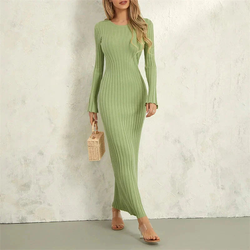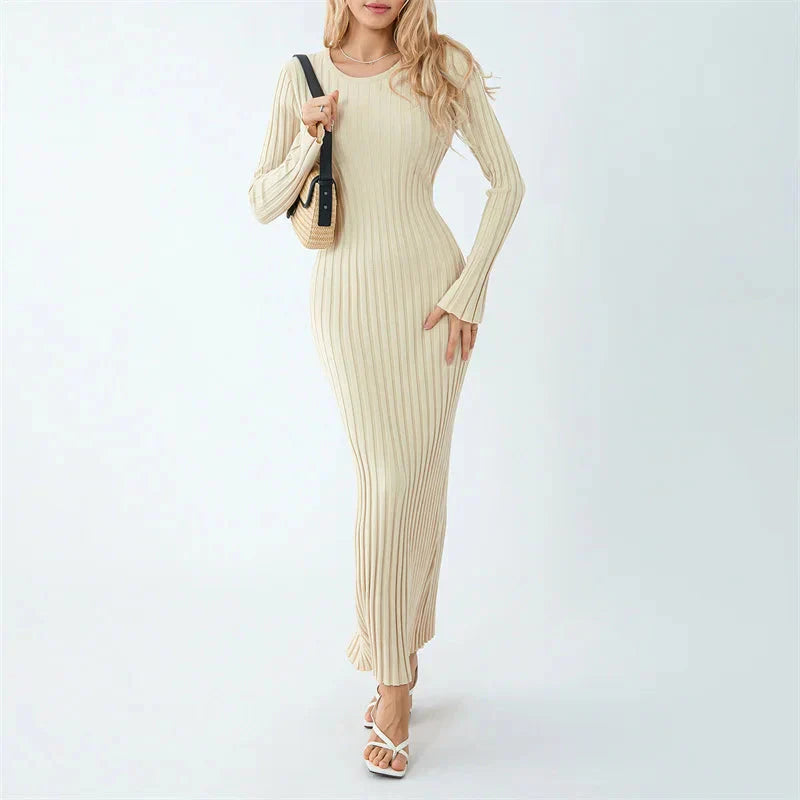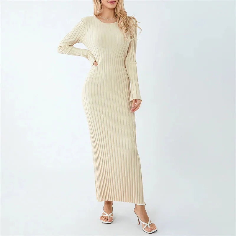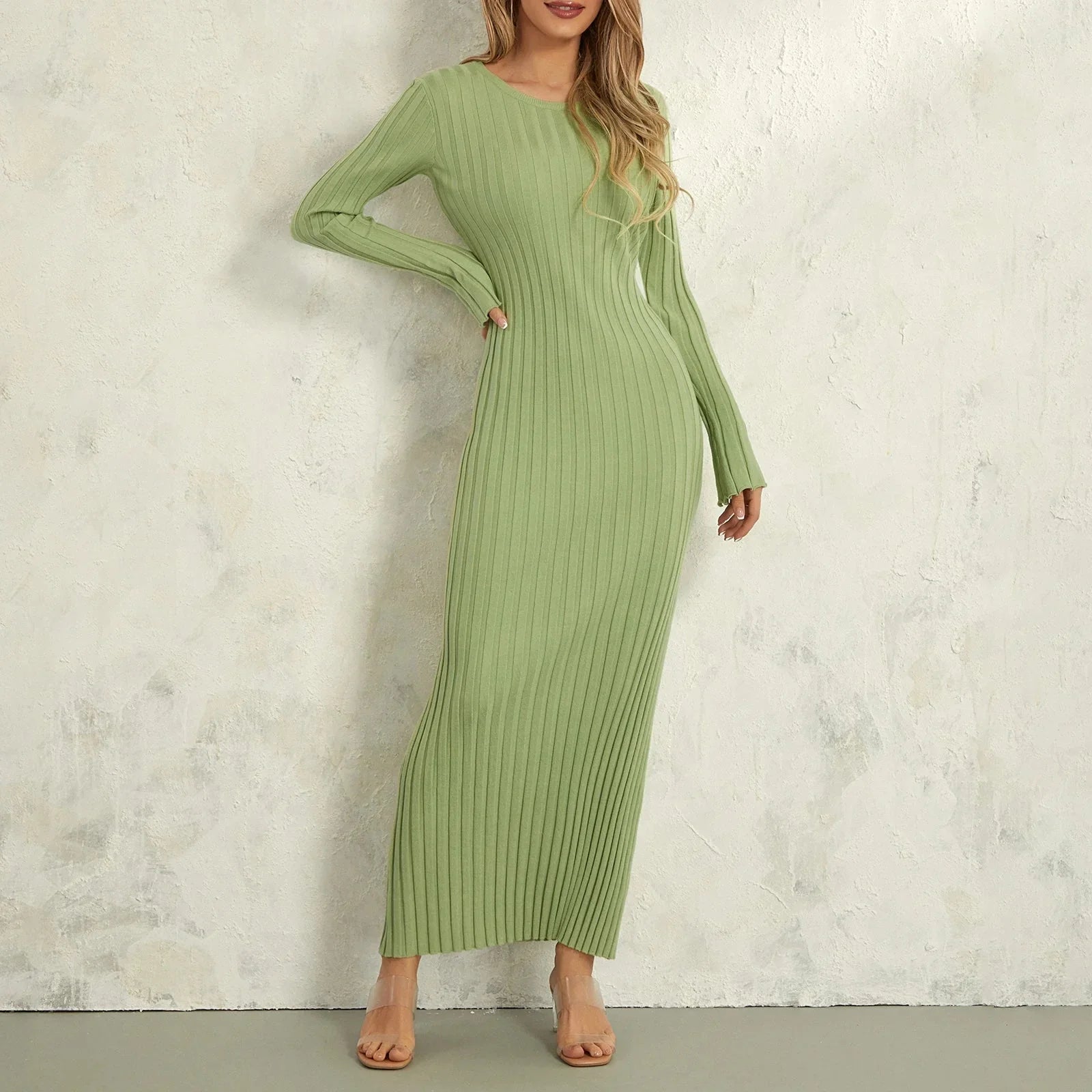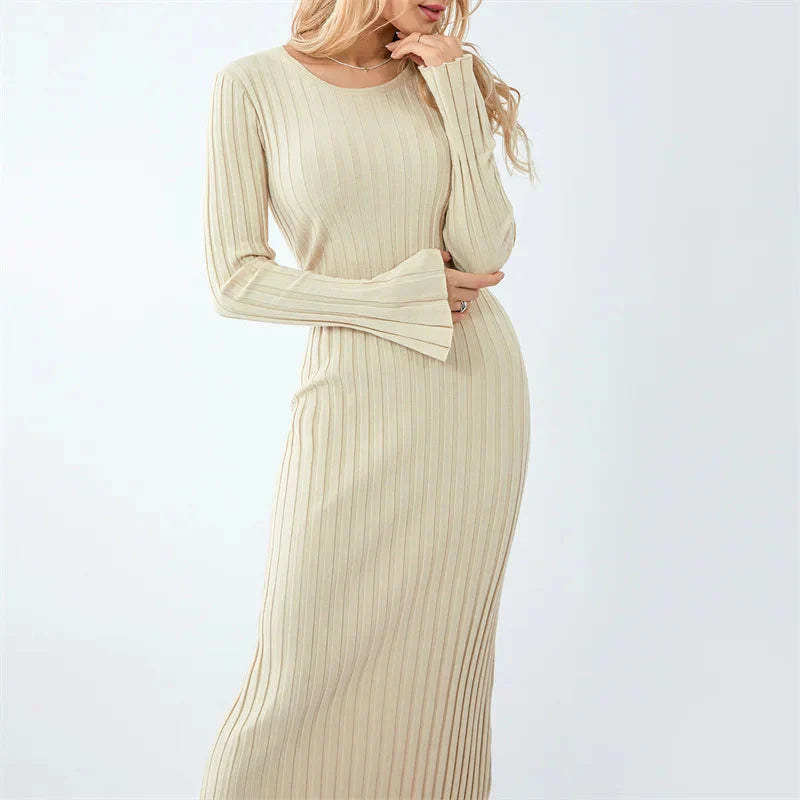 Představujeme přiléhavé maxi pletené šaty, ideální na podzim a zimu. Tyto pletené šaty s kulatým výstřihem, dlouhými rozšířenými rukávy a žebrovanou texturou, které jsou k dispozici v odstínech béžové, hnědé, tmavě hnědé a zelené, zajistí nejen pohodlí, ale i jedinečný, elegantní styl. Jedinečným detailem je decentní zavazování vzadu, které šatům dodává jedinečný charakter.