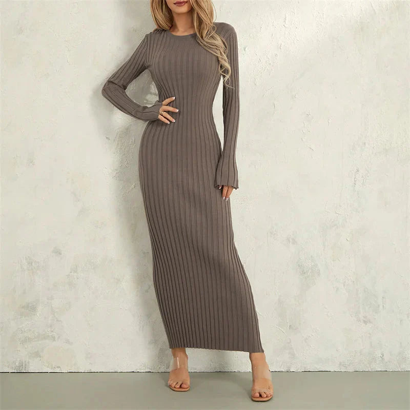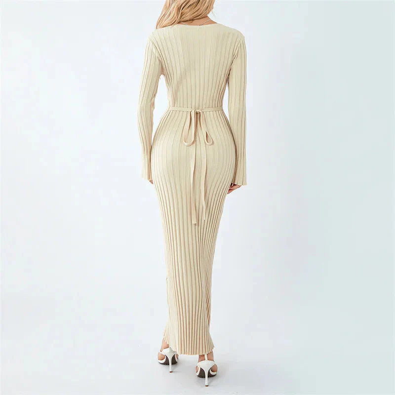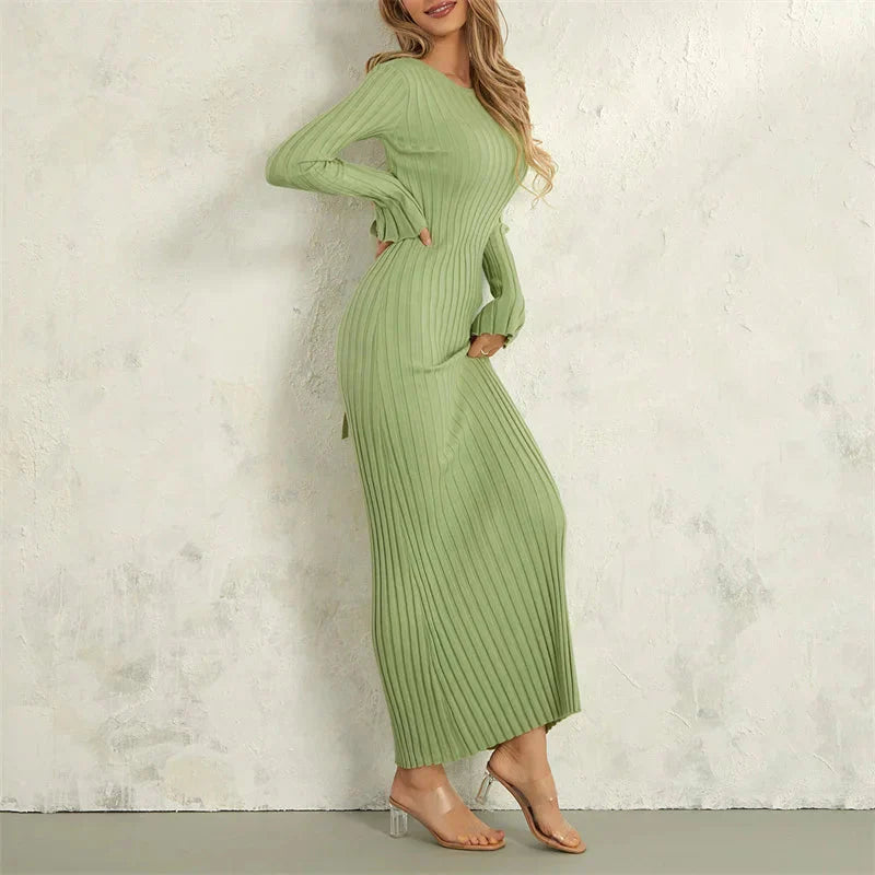 Přiléhavé maxi pletené šaty s vázáním vzadu
