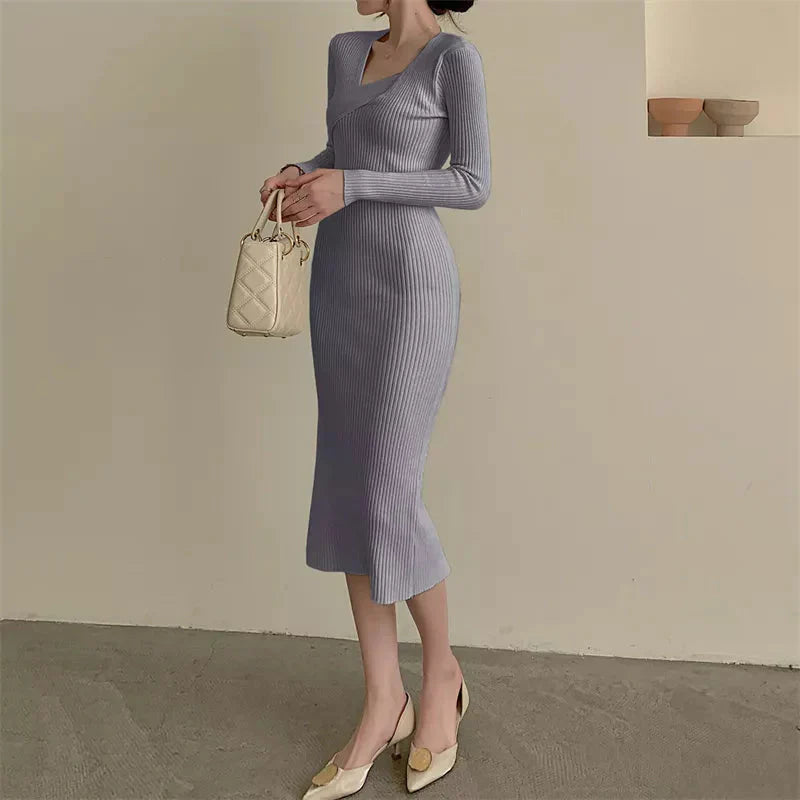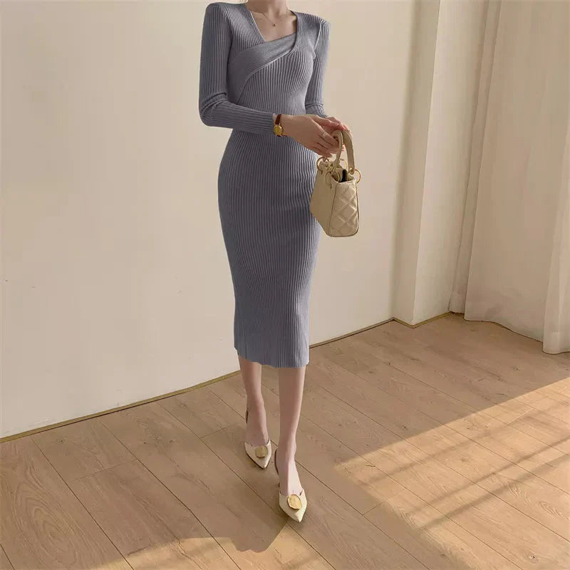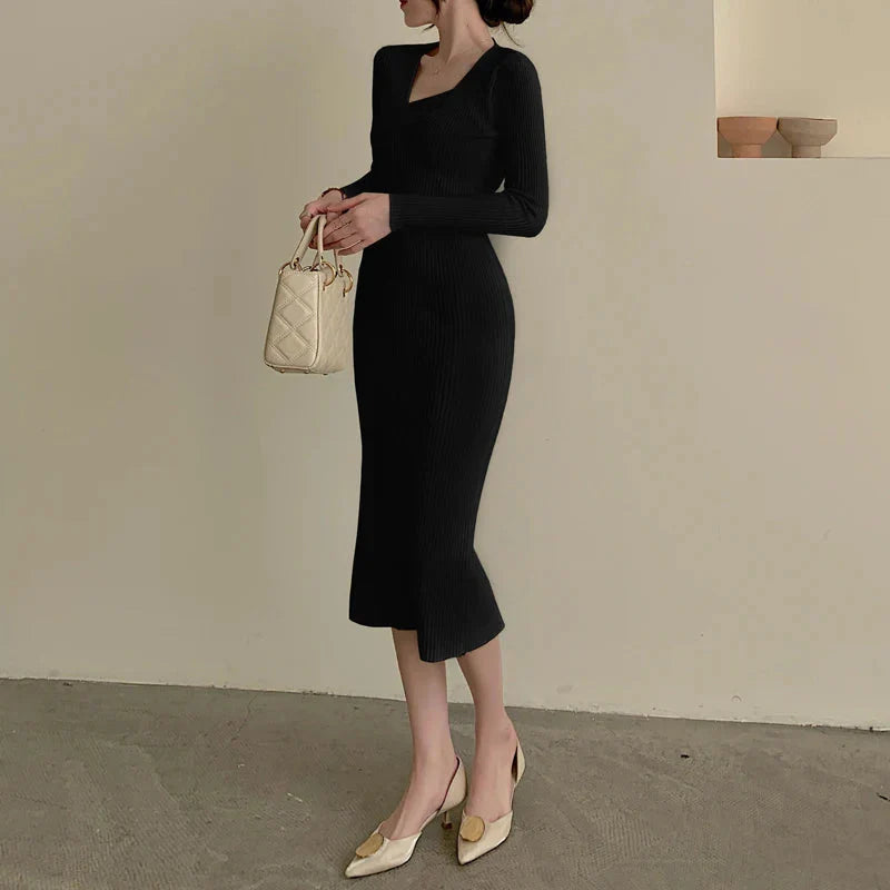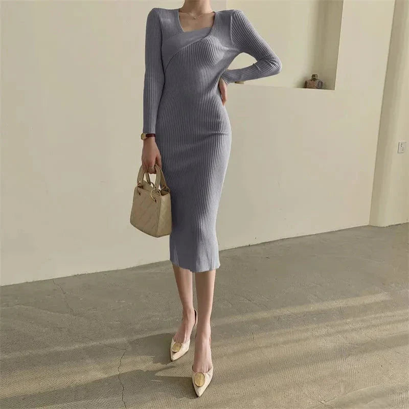 Přiléhavé žebrované midi pletené šaty