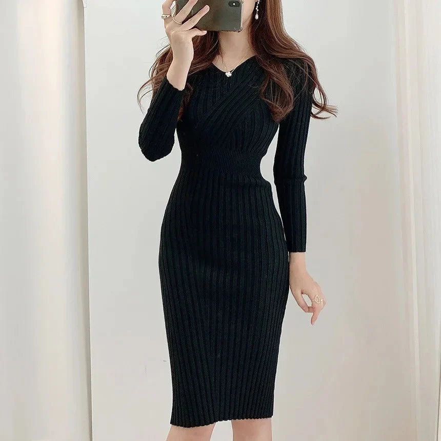 Naše elegantní žebrované pletené midi šaty se vyznačují dokonale padnoucí siluetou, ideální pro chladnější podzimní a zimní dny. Díky jemným odstínům béžové a černé, výstřihu do V, dlouhým rukávům a žebrované struktuře budou tyto šaty lichotit vaší postavě a nabídnou pohodlí i styl.
