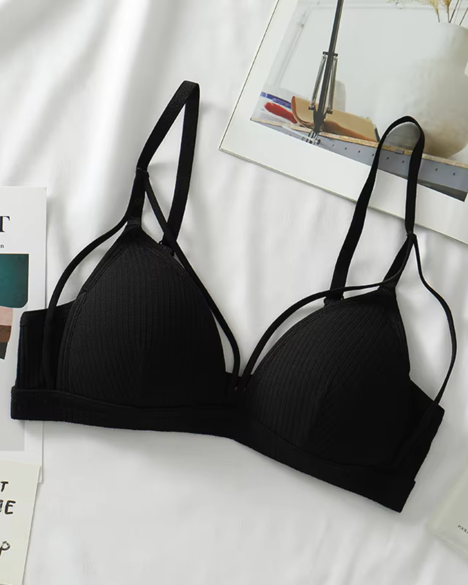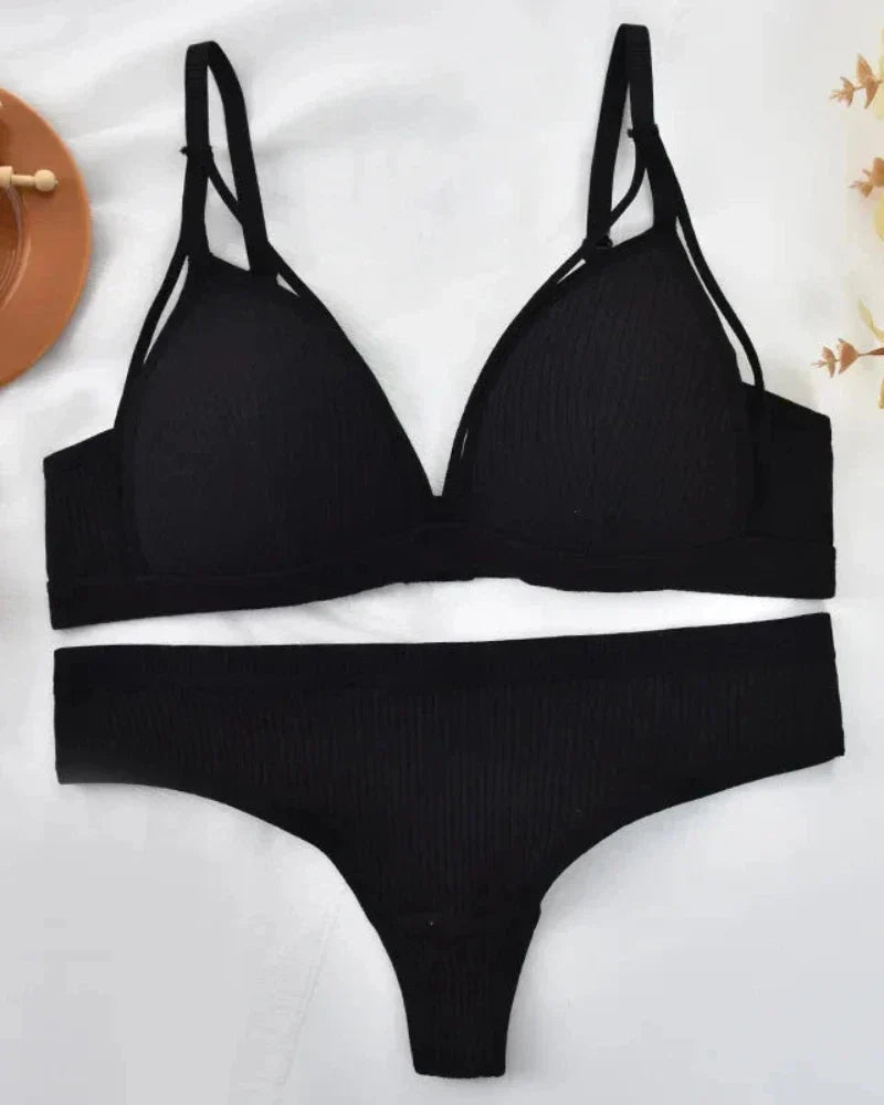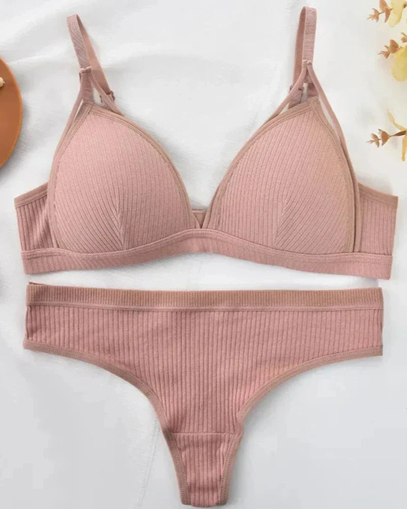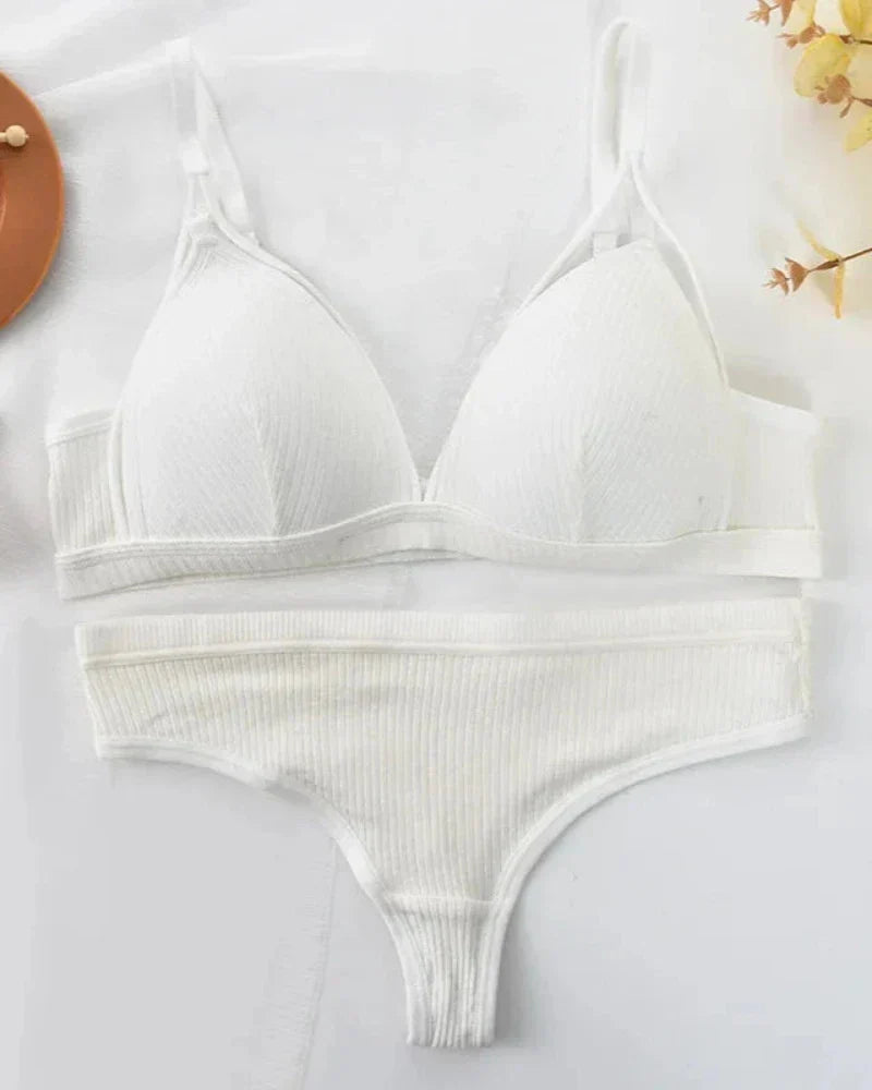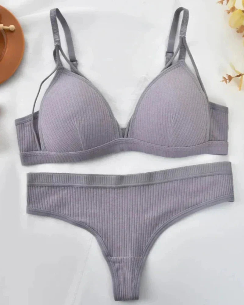Pohodlná sada pruhovaného spodního prádla s ozdobnými ramínky.