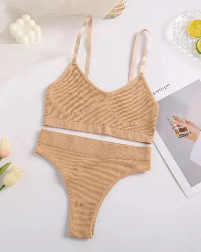 Pohodlná sada spodního prádla z žebrovaného materiálu