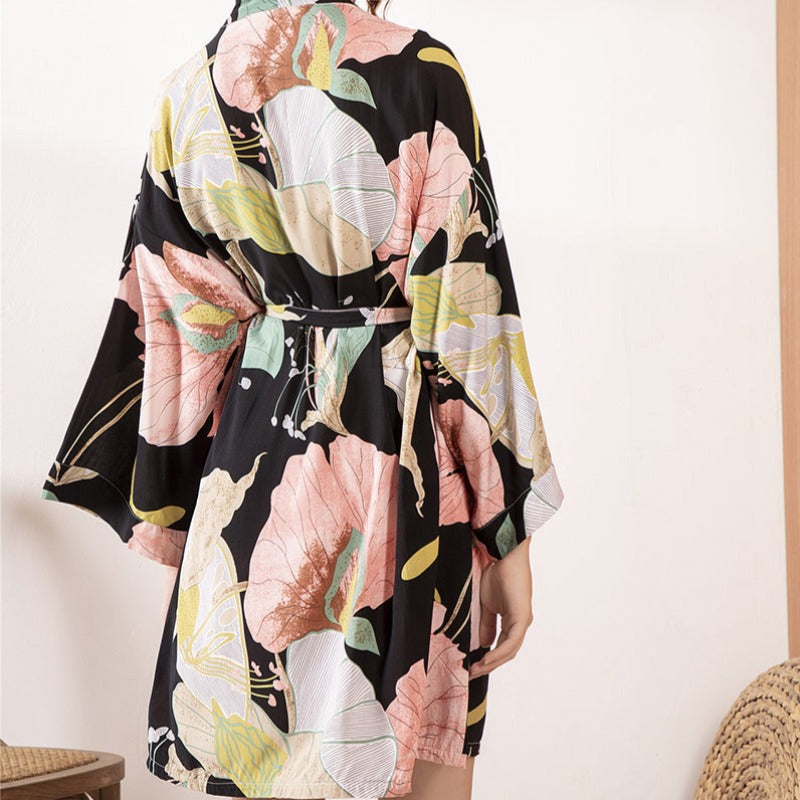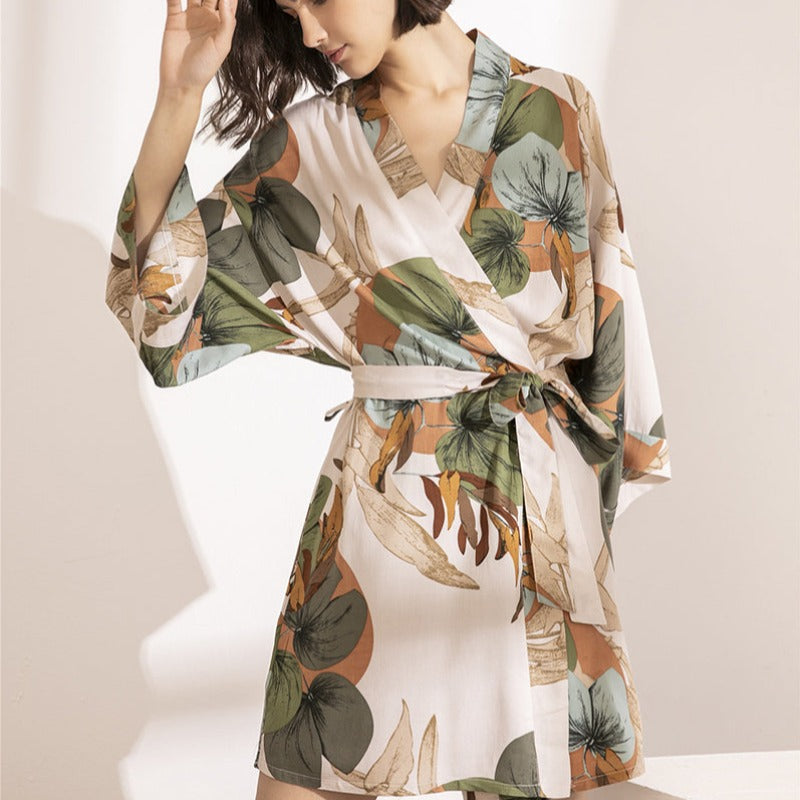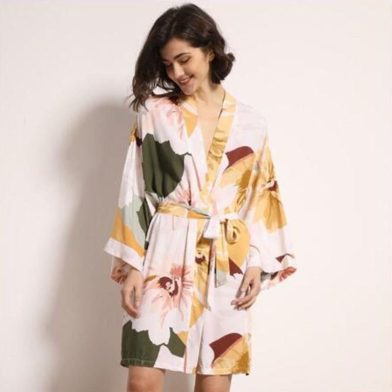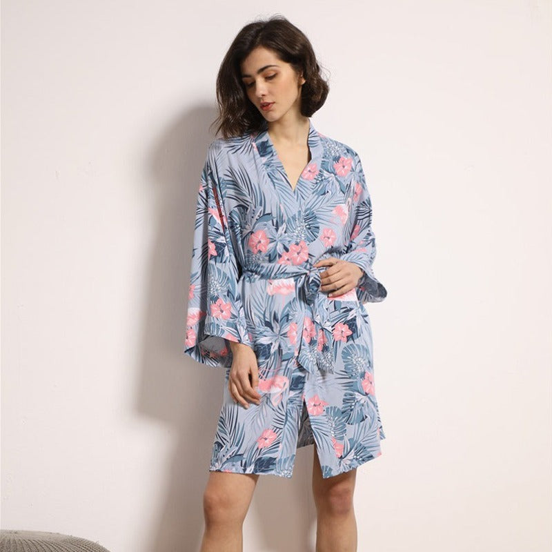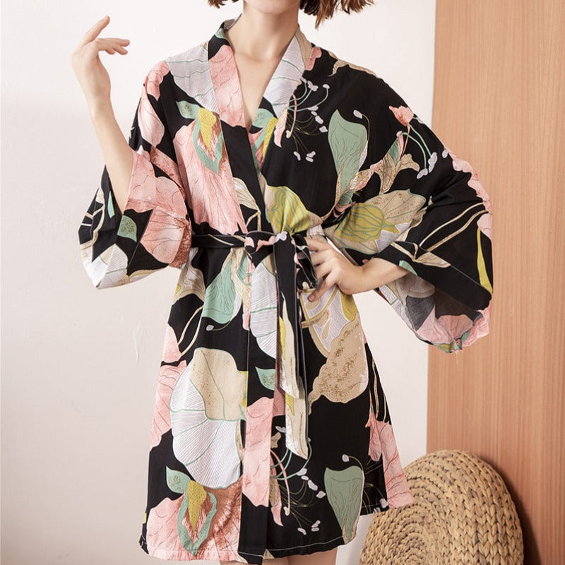 Náš pohodlný župan z měkké látky je pohodlnou a stylovou volbou pro každodenní nošení i spaní. Je vyroben z měkkého, příjemného materiálu na dotek, který zajišťuje pohodlí. Jeho krátká délka, sahající těsně pod kolena, umožňuje volnost pohybu. Charakteristickým prvkem tohoto županu je zavazování v pase, které umožňuje přiléhavý střih a zdůrazňuje ženské křivky. Květinový motiv dodává županu kouzlo a lehkost. Tento měkký květinový župan je perfektním dárkem pro ženu, která si v každodenním životě cení pohodlí a elegance.