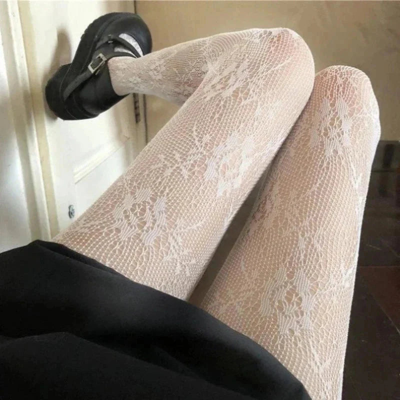 Vzorované punčocháče s motivem růže