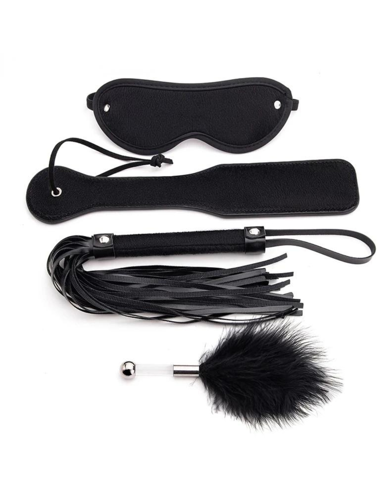 Přeneste se do světa smyslnosti a objevte tajemství rozkoše s touto jedinečnou sadou. Dokonalá kombinace jemné dominance a oddané podřízenosti učiní každý okamžik nezapomenutelným. Třásně z bičíku dodávají vzrušení, zatímco oční maska ​​zesiluje pocity tím, že eliminuje zrak. Lechtící pírko jemně klouže po pokožce a nabízí bezkonkurenční pocit.
