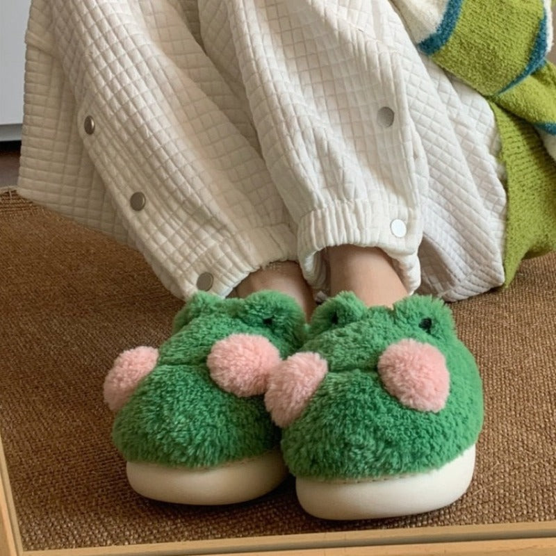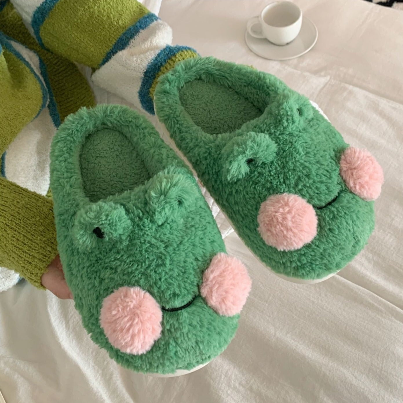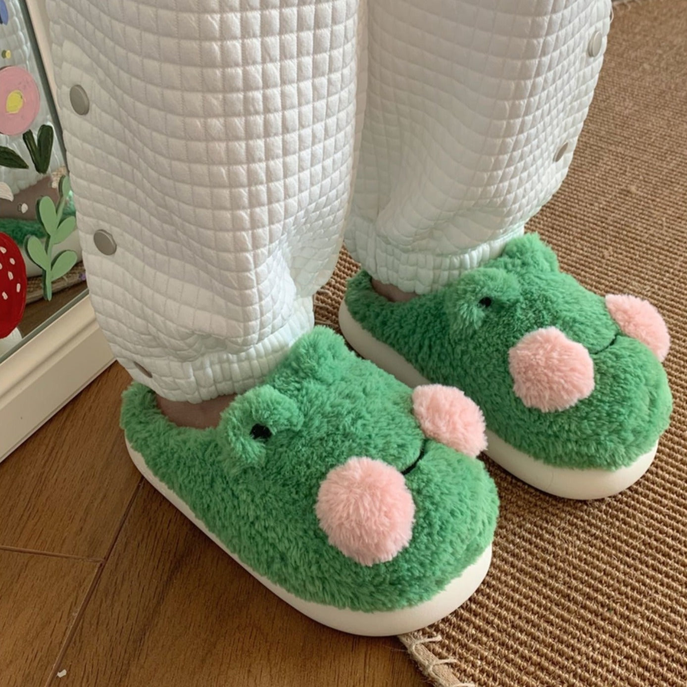 Objevte pohodlí a teplo našich rozkošných zelených žabích pantoflí. Tyto měkké a nadýchané domácí boty jsou ideální pro každodenní nošení. Mají uzavřenou špičku, která zajistí teplo a pohodlí i v chladnějších dnech. Okouzlující potisk žabích zvířat dodá vašemu každodennímu outfitu kouzlo a jistě vykouzlí úsměv na tváři každému, kdo je uvidí. Nazouvací design usnadňuje nazouvání a zouvání. Silná podrážka navíc poskytuje stabilitu a pohodlí při chůzi.