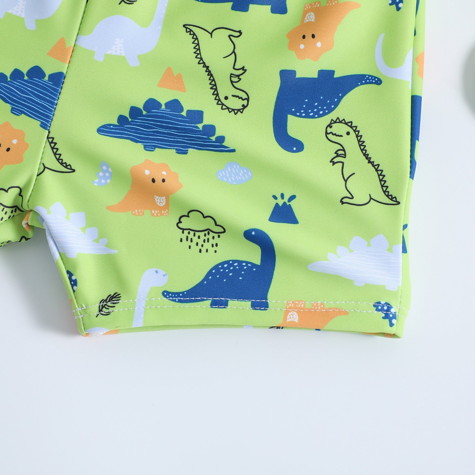 Tyto chlapecké plavky s dinosaury jsou perfektní volbou pro každého mladého fanouška prehistorických plazů. Pohodlný střih boxerky a elastický pas zajišťují volnost pohybu a perfektní padnutí, zatímco motivy dinosaurů dodávají kalhotám styl a charakter.