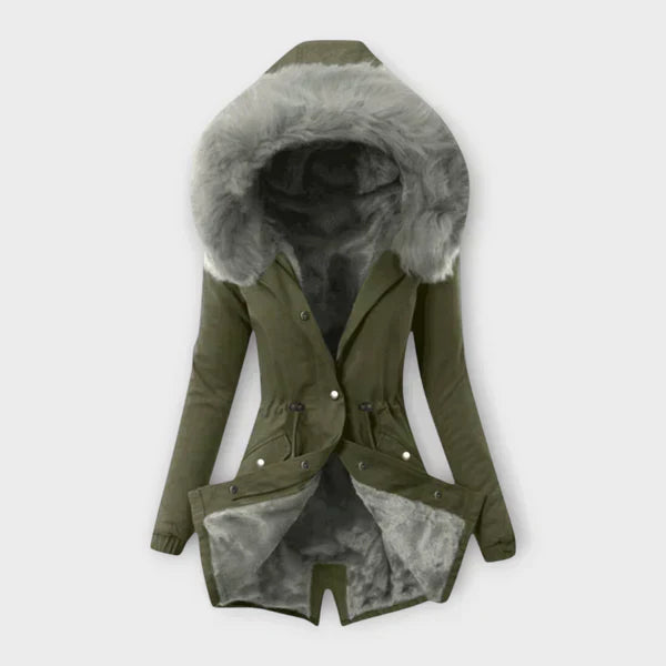 • Elegantní kapuce s kožešinou (umělou kožešinou) pro luxusní akcent a extra teplo.